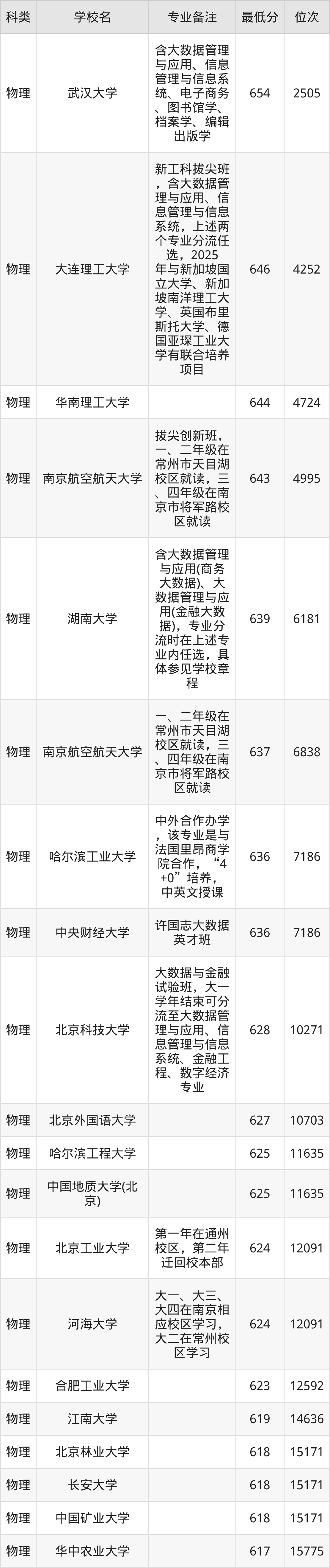 下面是2025年大数据管理与应用录取分数线Top100一览表: