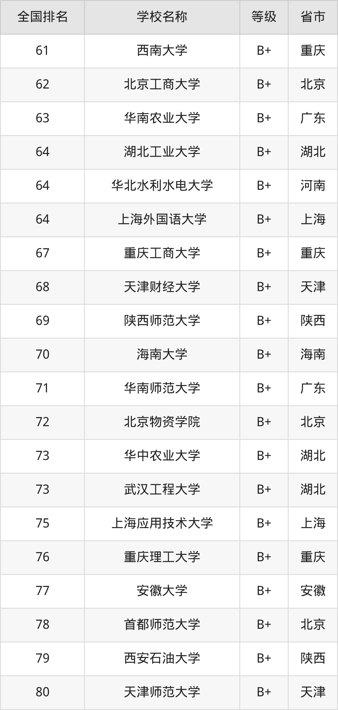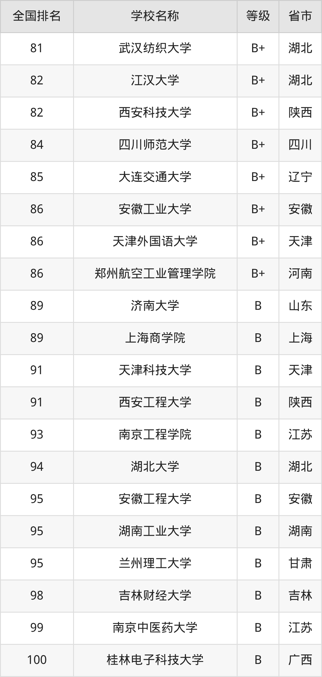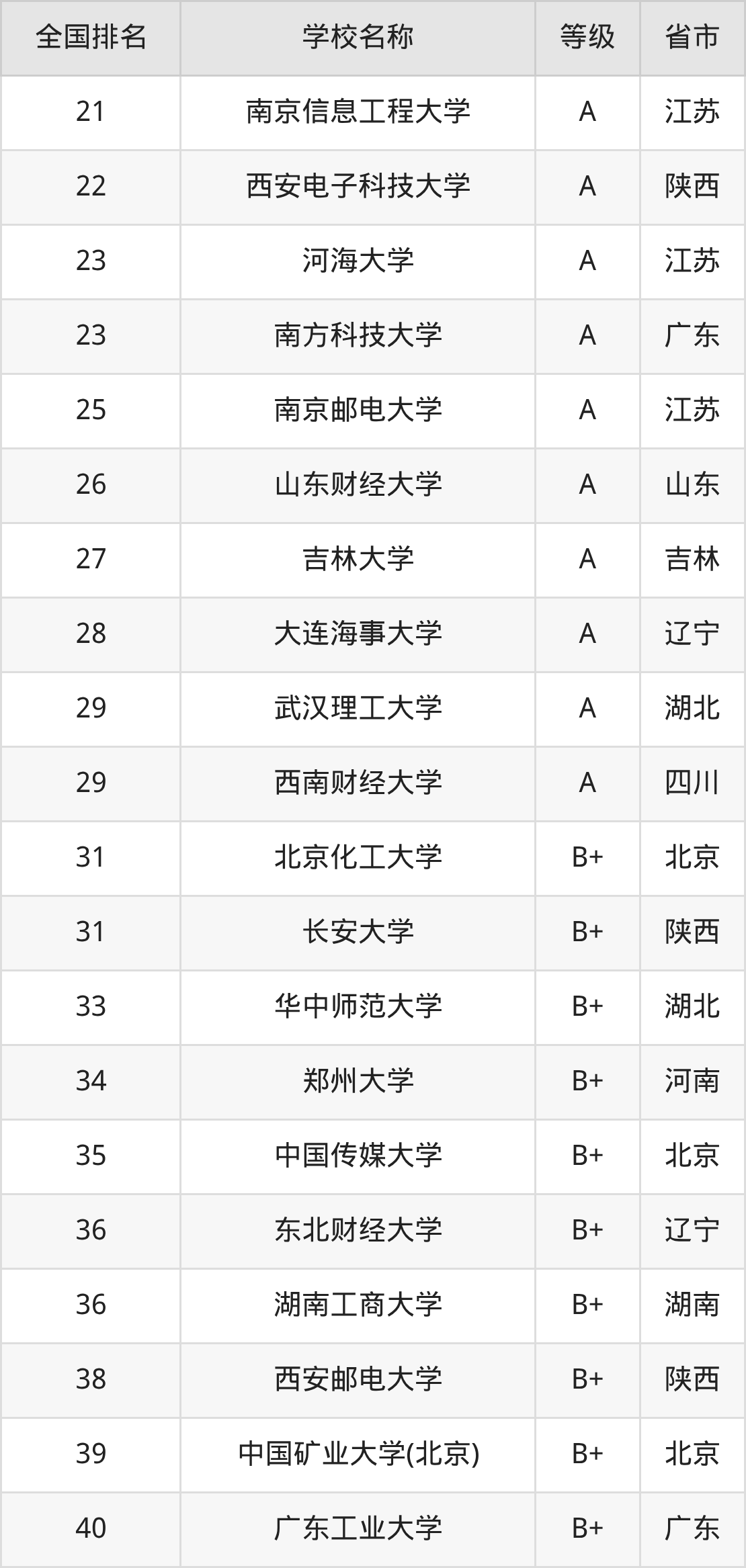最新排名表可直接见下: