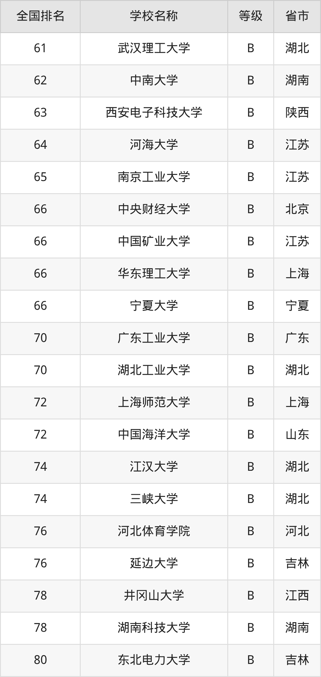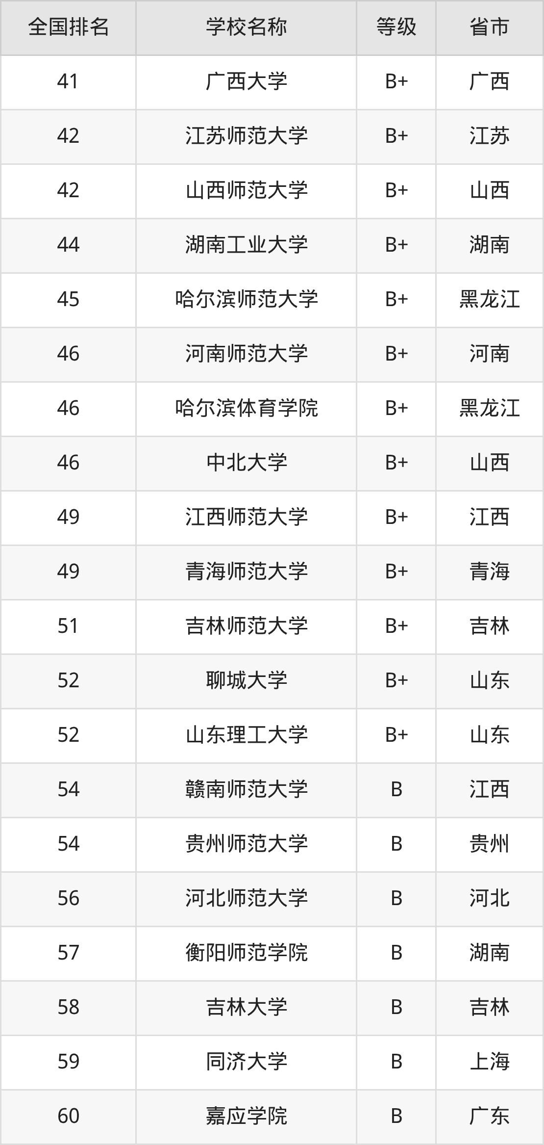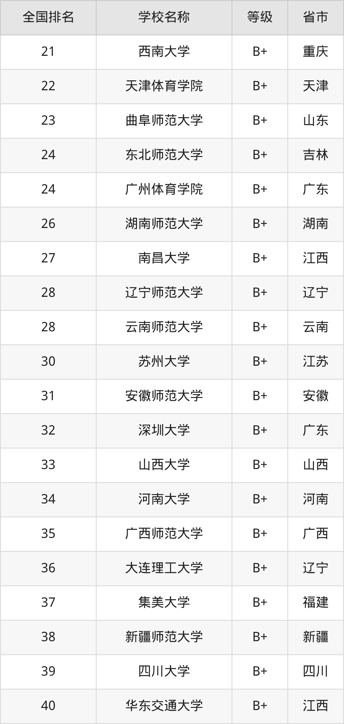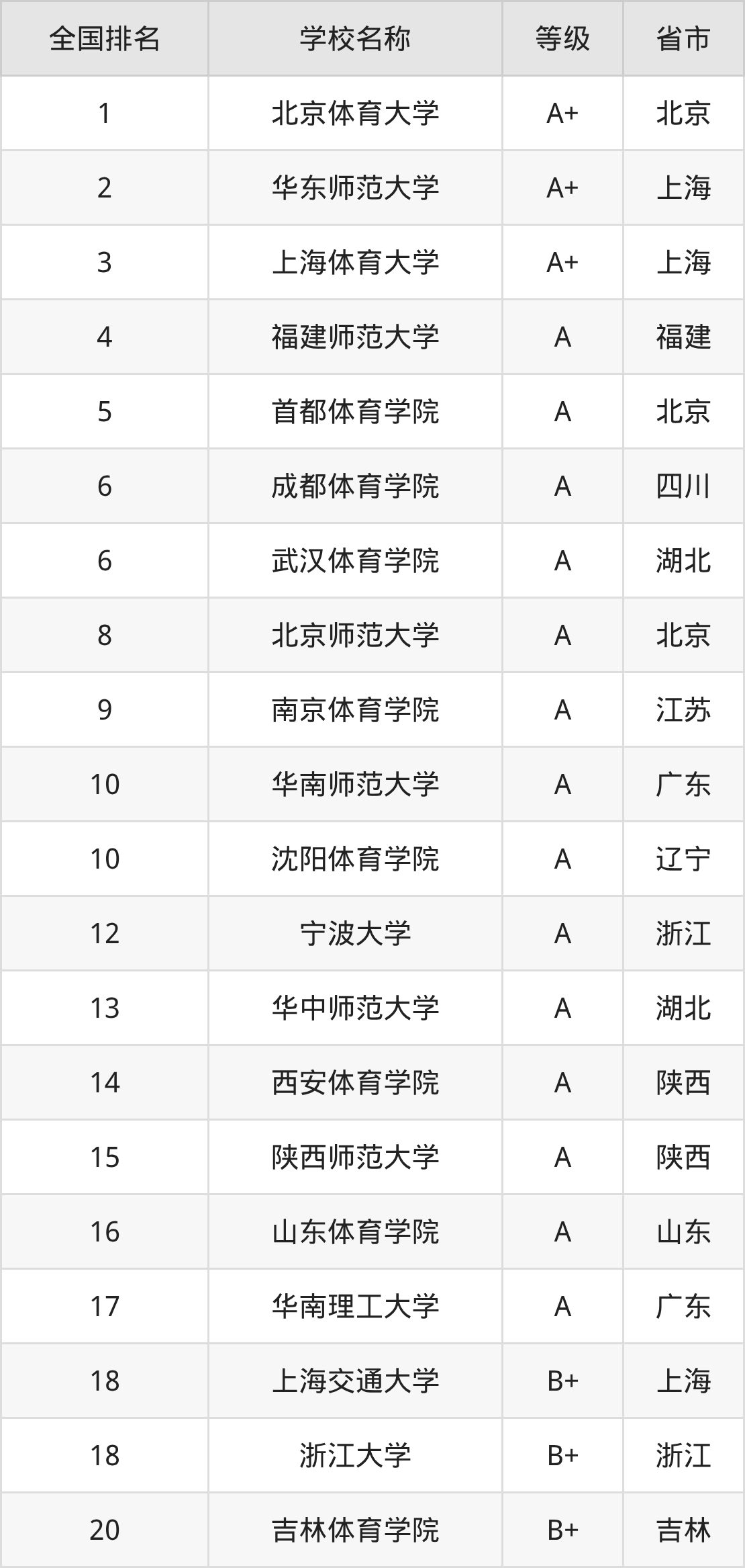 下面是运动训练专业全国排名前10的大学名单及实力评级: