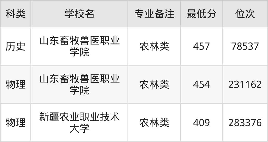 下面是2025年动物防疫与检疫录取分数线Top3一览表: