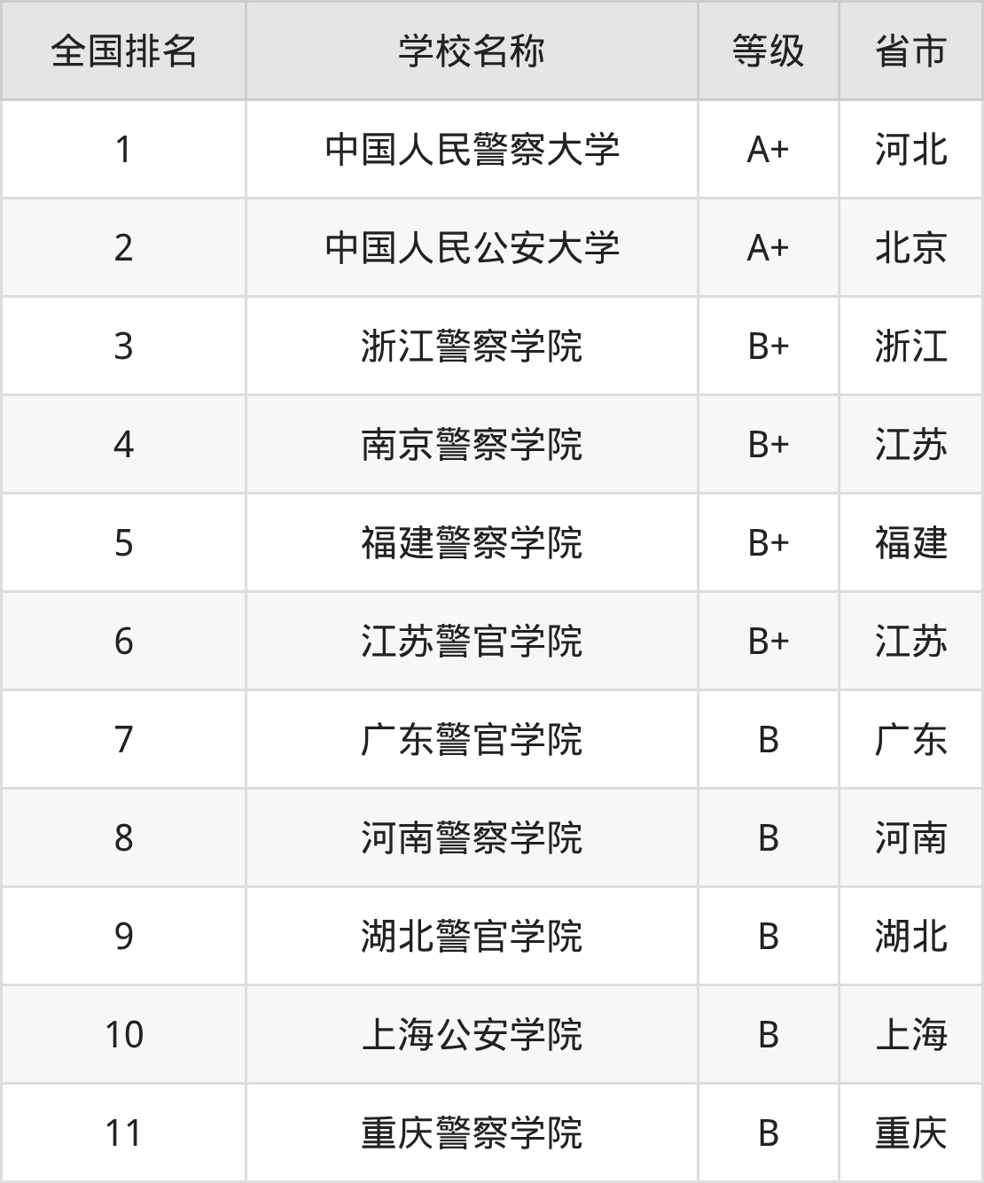 1、中国人民警察大学(A+级)