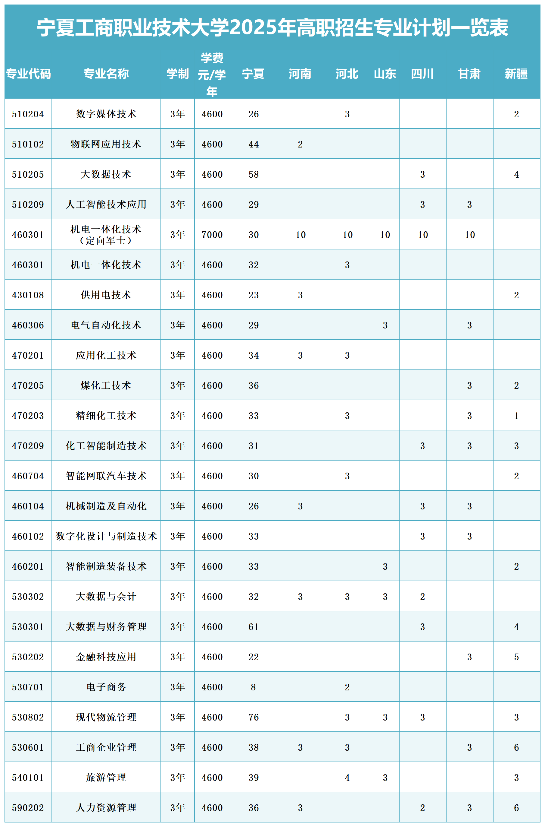 招生地区:宁夏、河南、河北、山东、四川、甘肃、新疆。