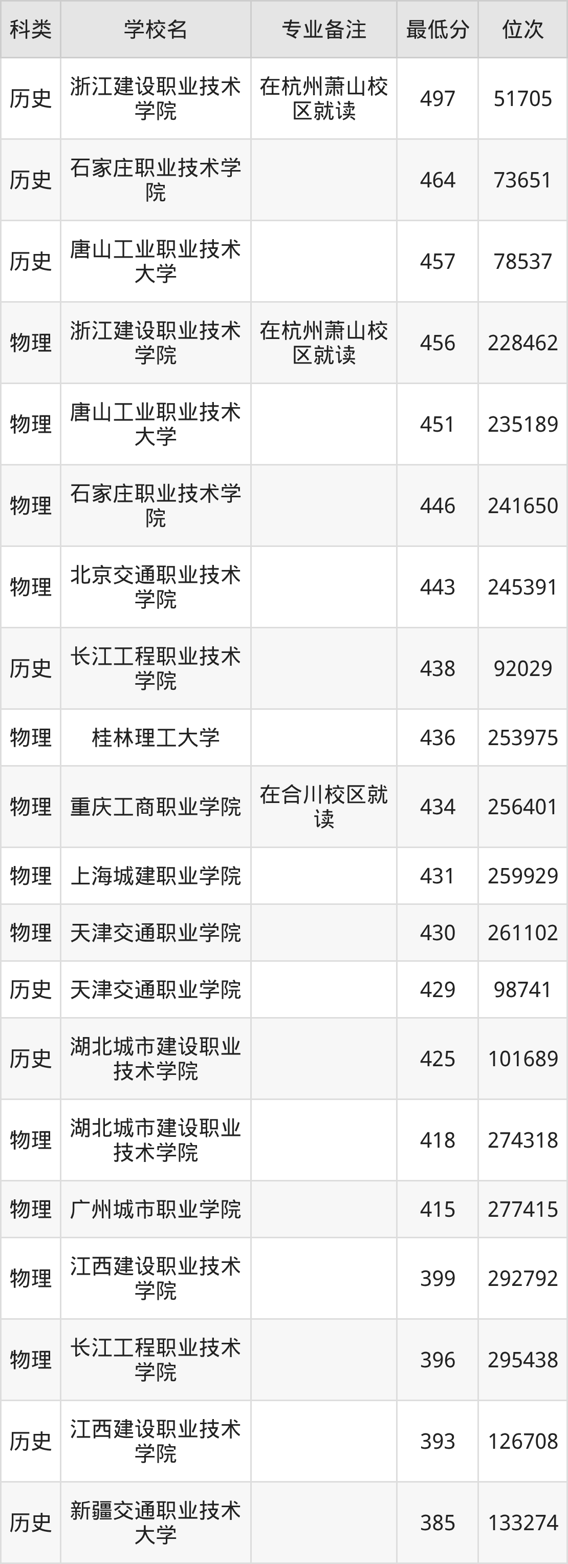 下面是2025年市政工程技术录取分数线Top28一览表: