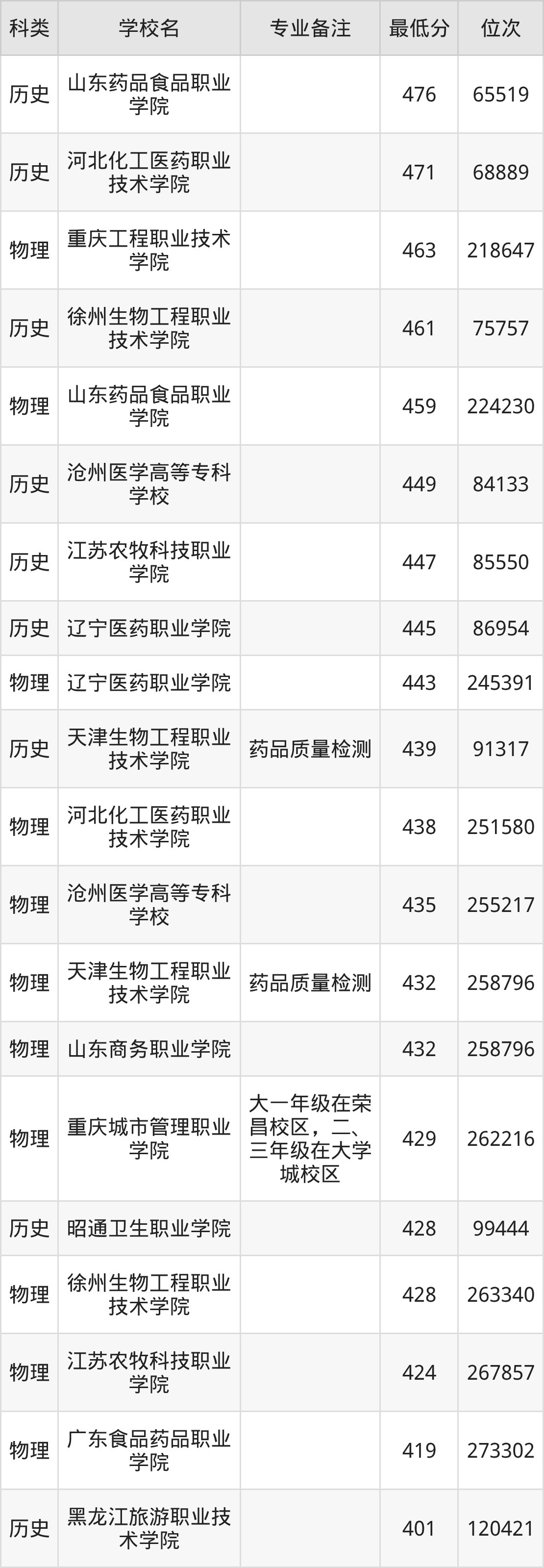 下面是2025年药品质量与安全录取分数线Top33一览表: