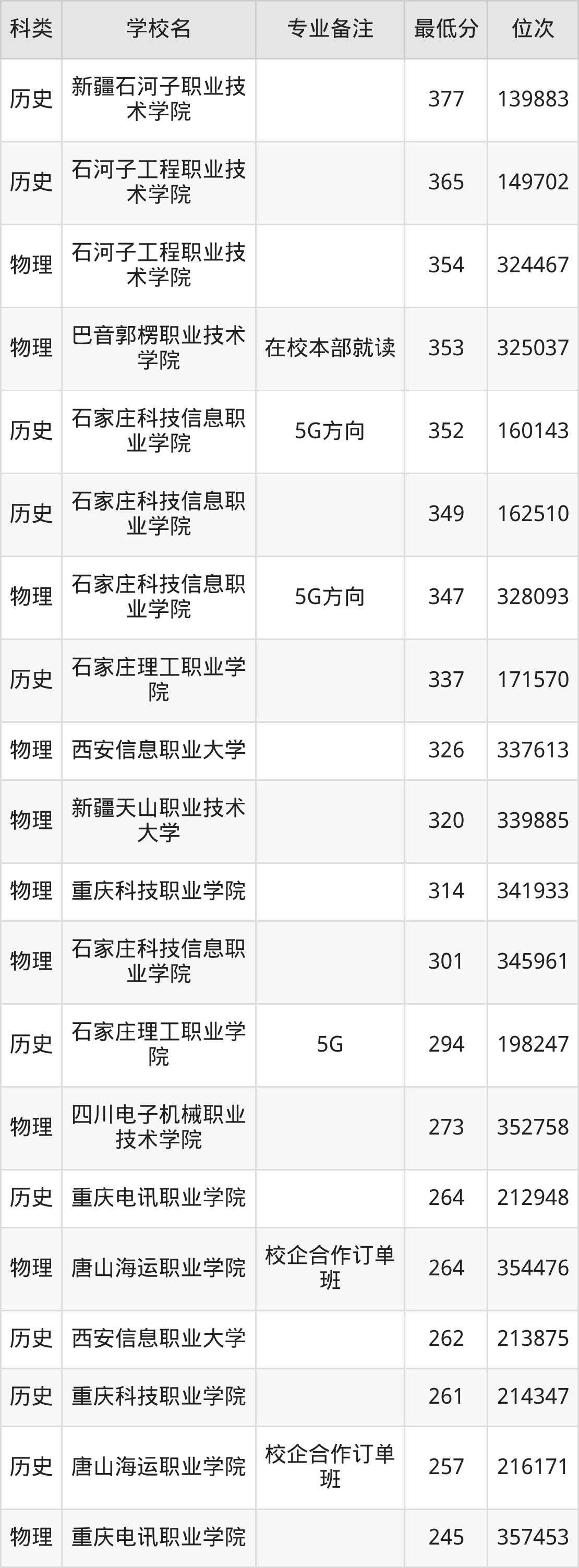 2025年全国大学现代移动通信技术录取分数线在201分~482分之间。数据显示,考生如果想报考公办大学,分数要在353分及以上,最低分院校有巴音郭楞职业技术学院等。