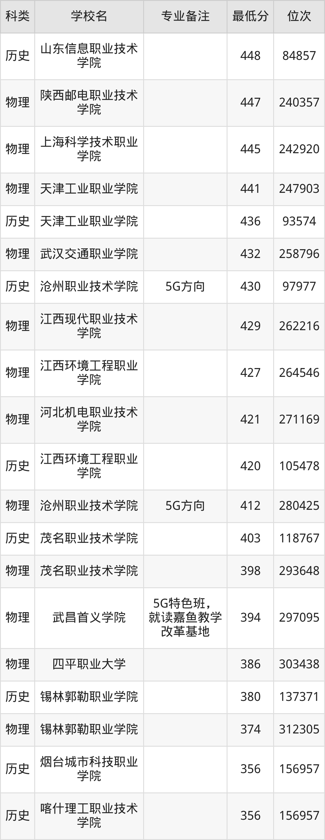 下面是2025年现代通信技术录取分数线Top55一览表: