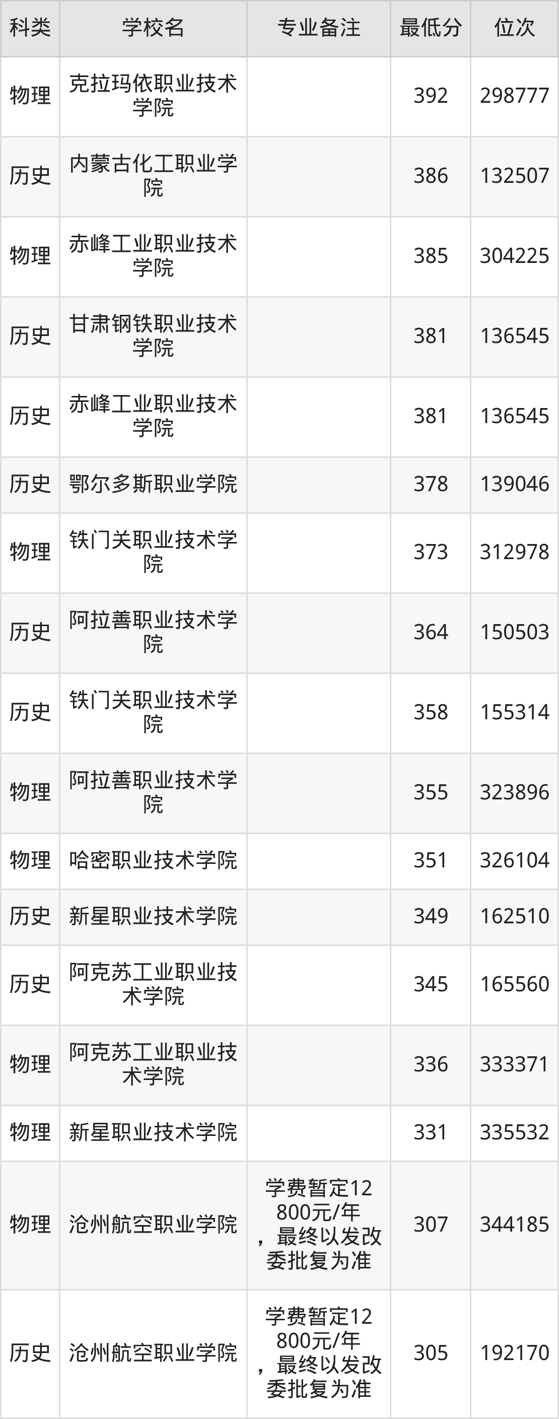 分析检验技术专业分数最低的民办大学是沧州航空职业学院,其2025年最低分为305分,考生只要超专科线105分即有概率能被录取。
