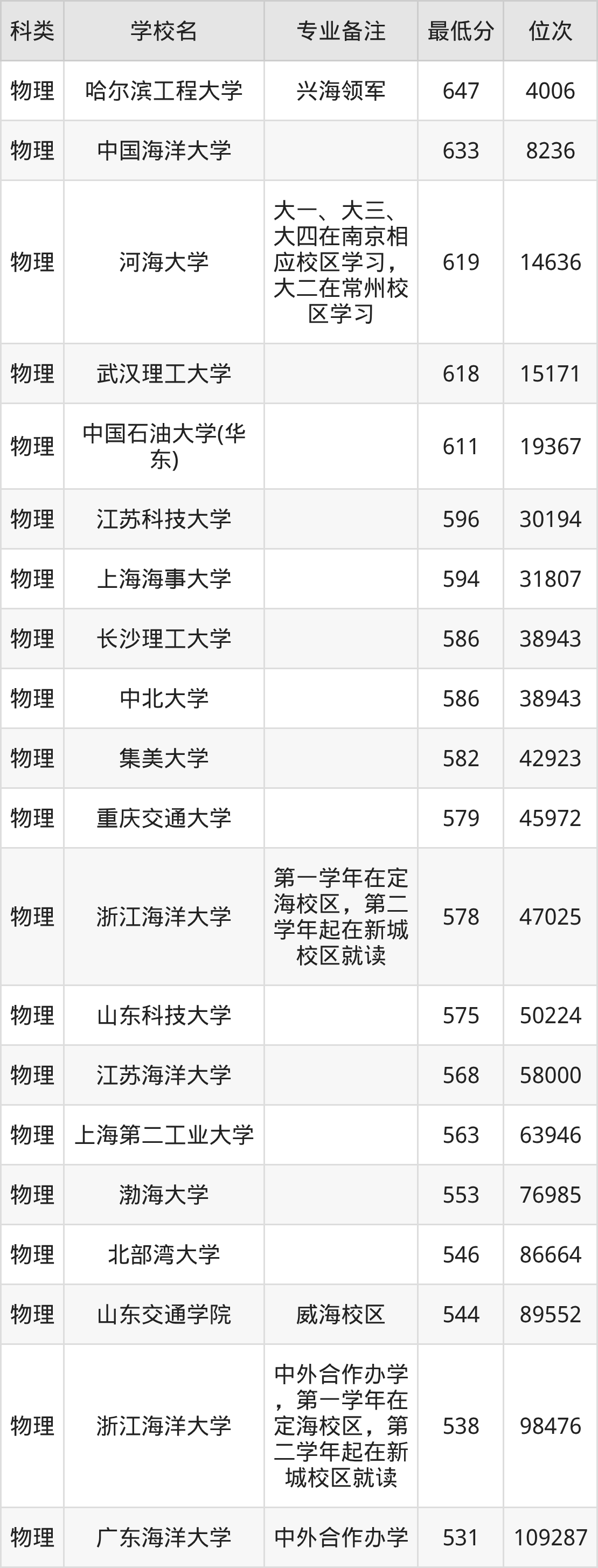 下面是2025年船舶与海洋工程录取分数线Top23一览表: