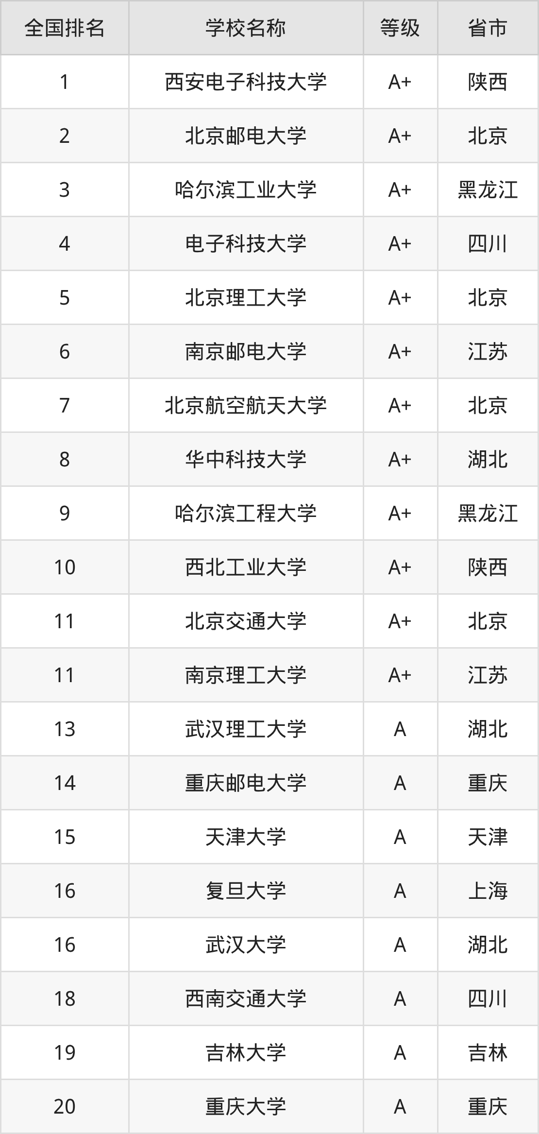 下面是通信工程专业全国排名前10的大学名单及实力评级: