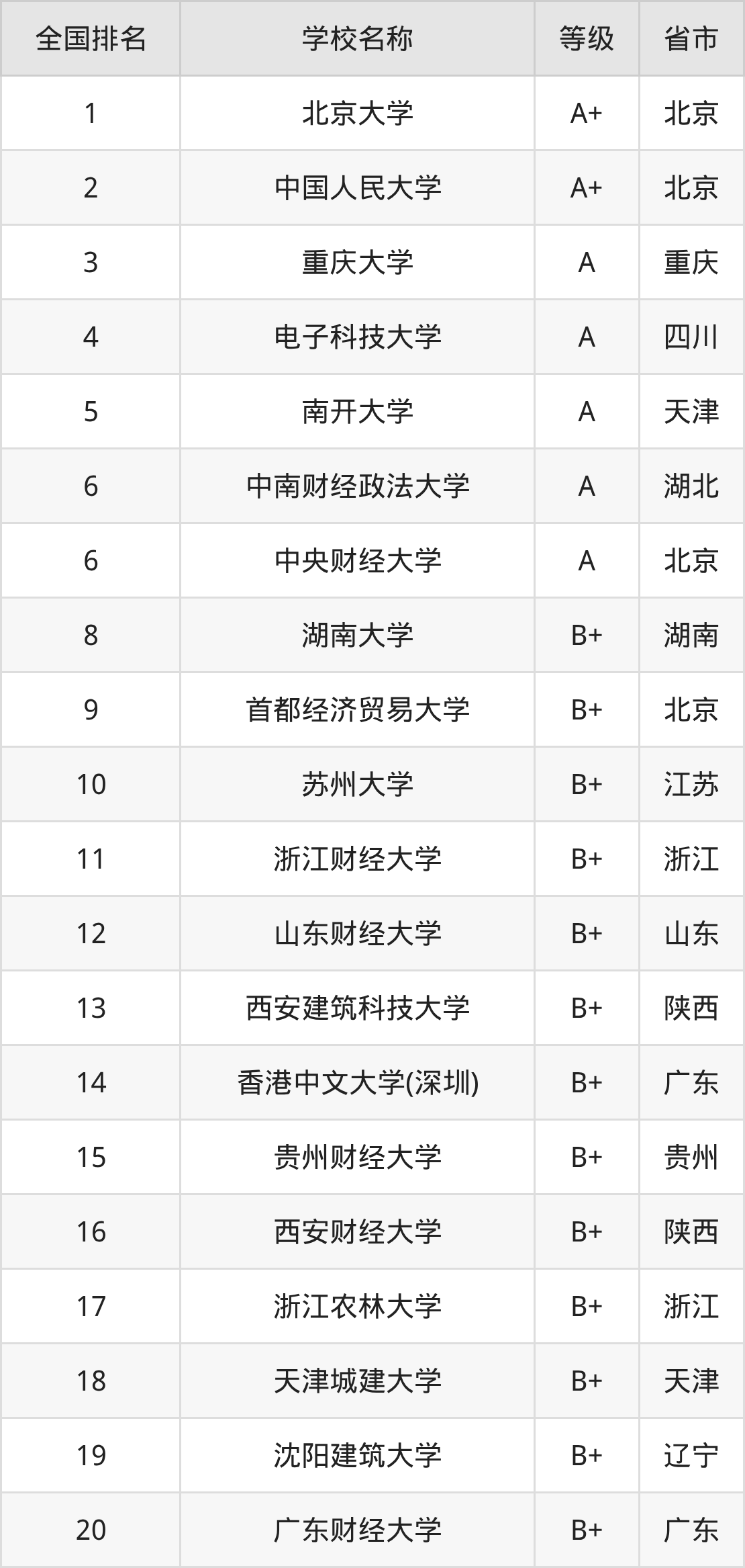 下面是城市管理专业全国排名前10的大学名单及实力评级:
