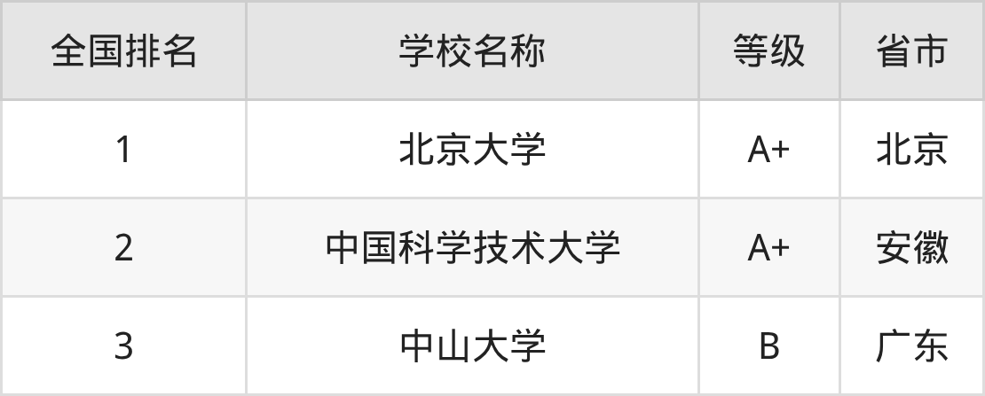 下面是行星科学专业全国排名前3的大学名单及实力评级: