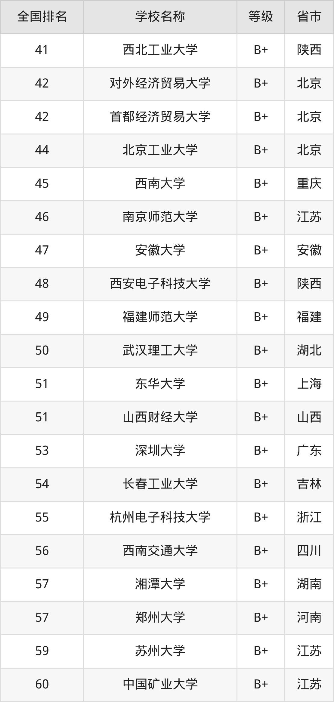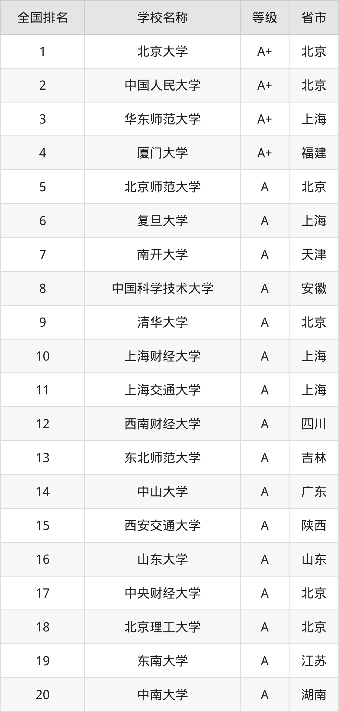 下面是统计学专业全国排名前10的大学名单及实力评级: