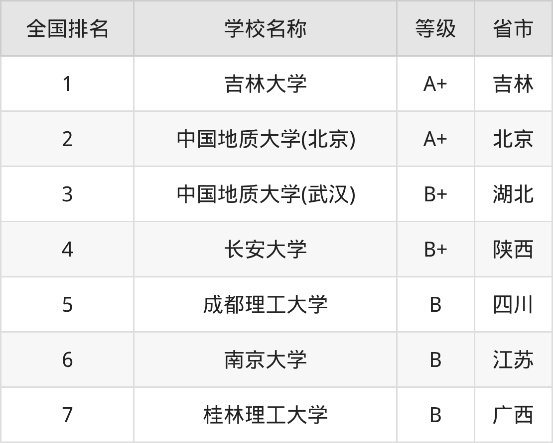 下面是地下水科学与工程专业全国排名前7的大学名单及实力评级: