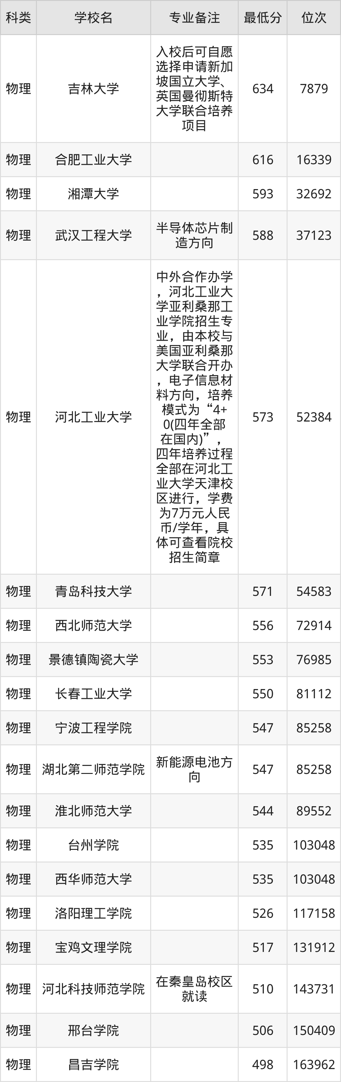 2025年全国大学材料物理录取分数线在498分~634分之间。数据显示,考生如果想报考公办大学,分数要在498分及以上,最低分院校有昌吉学院等。