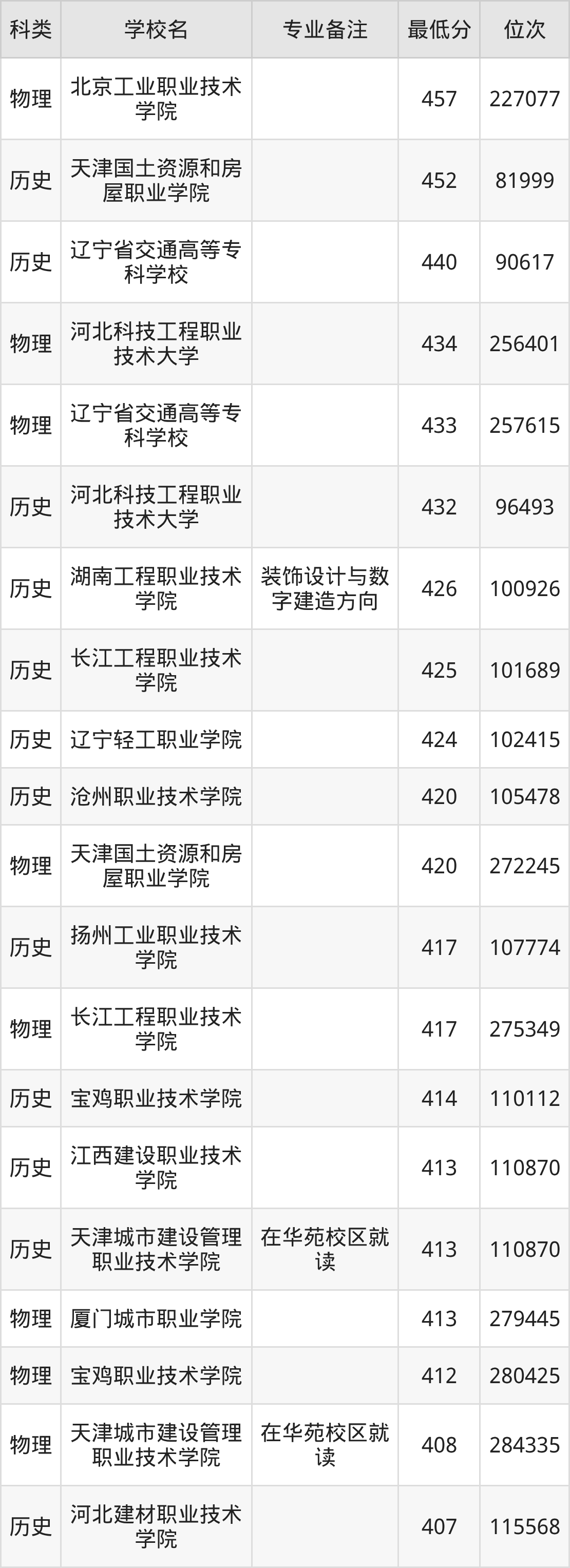 下面是2025年建筑装饰工程技术录取分数线Top57一览表: