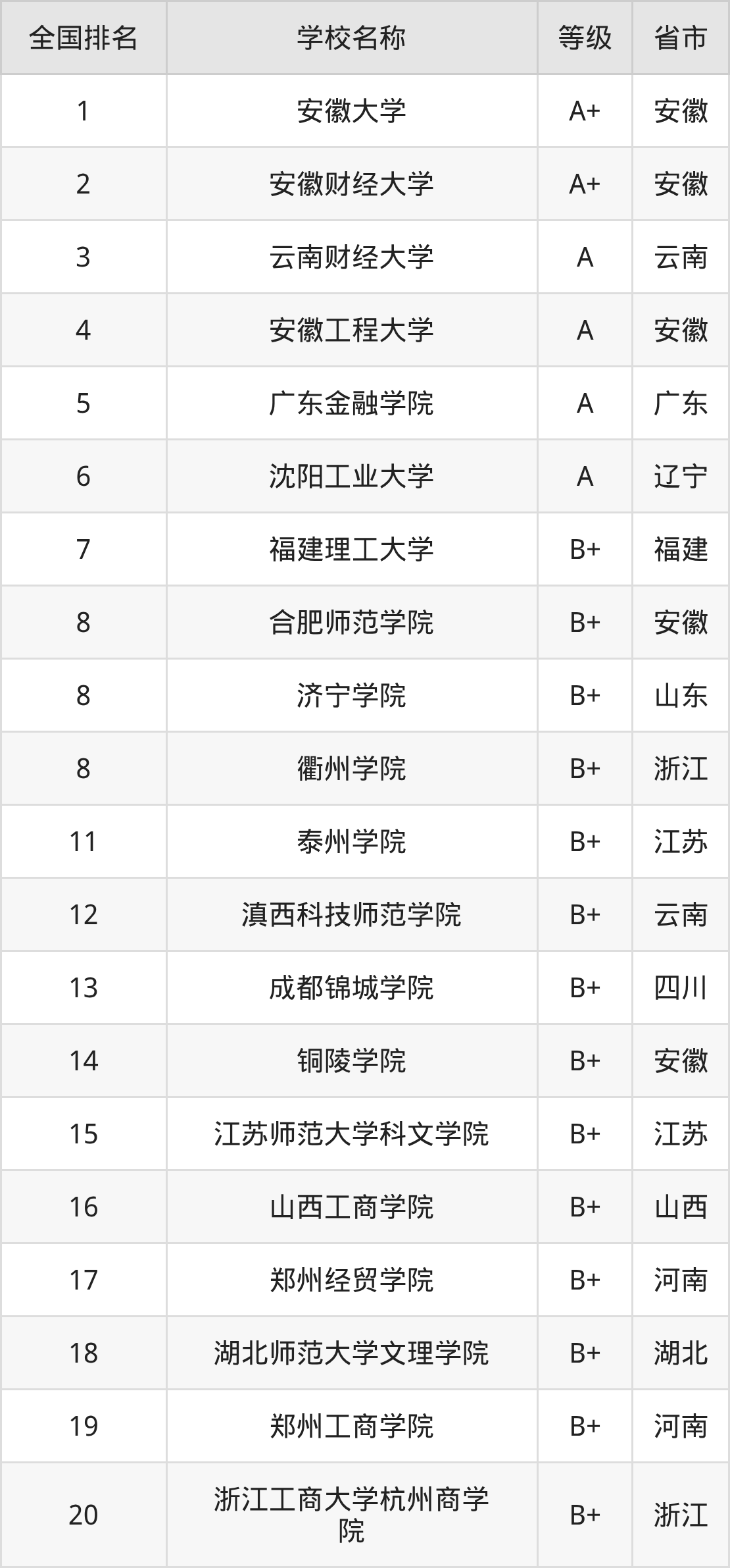 2、安徽财经大学(A+级)