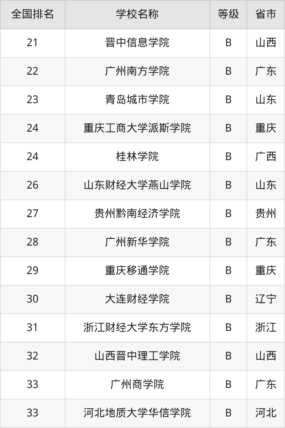 最新排名表可直接见下: