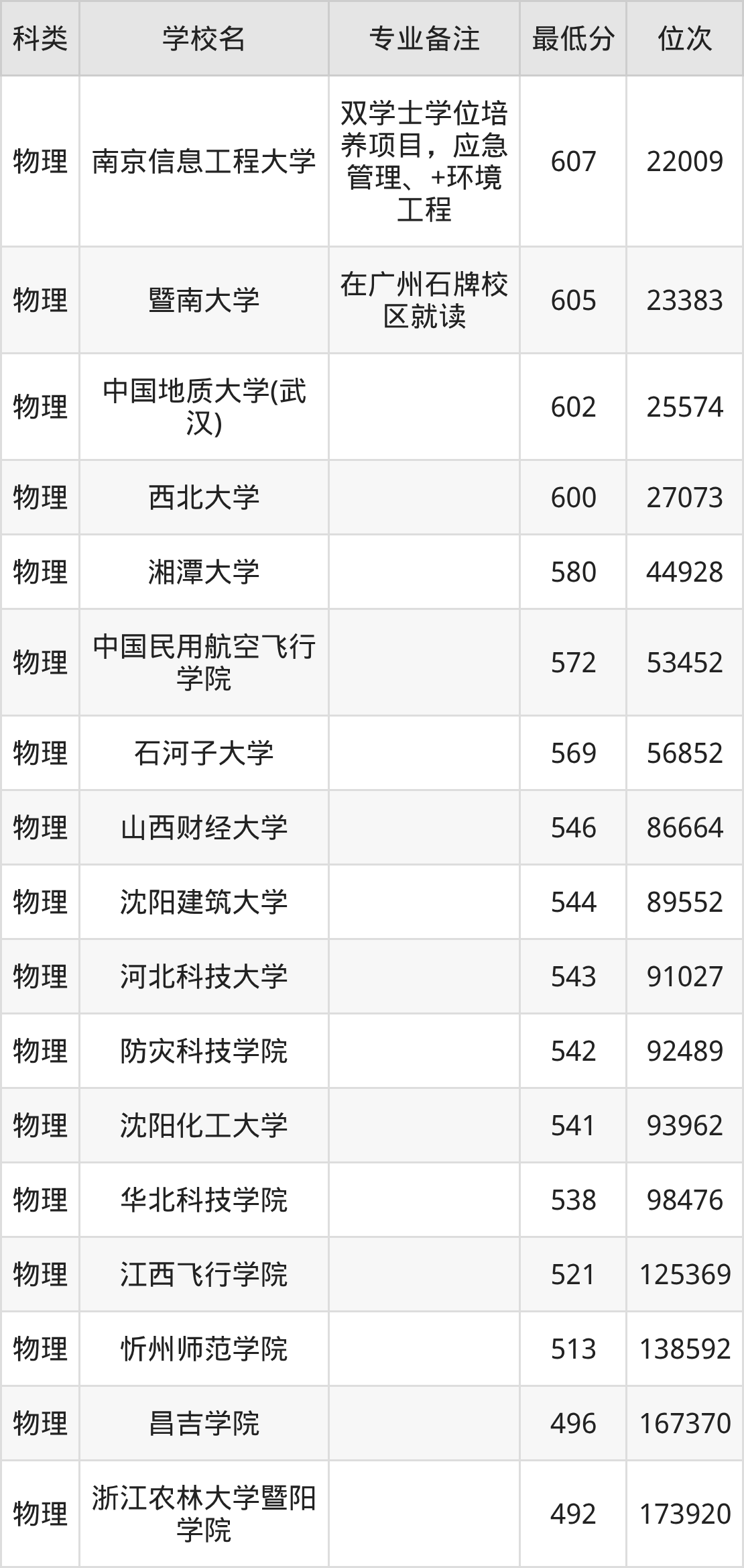 2025年全国大学应急管理录取分数线在492分~607分之间。数据显示,考生如果想报考公办大学,分数要在496分及以上,最低分院校有昌吉学院等。