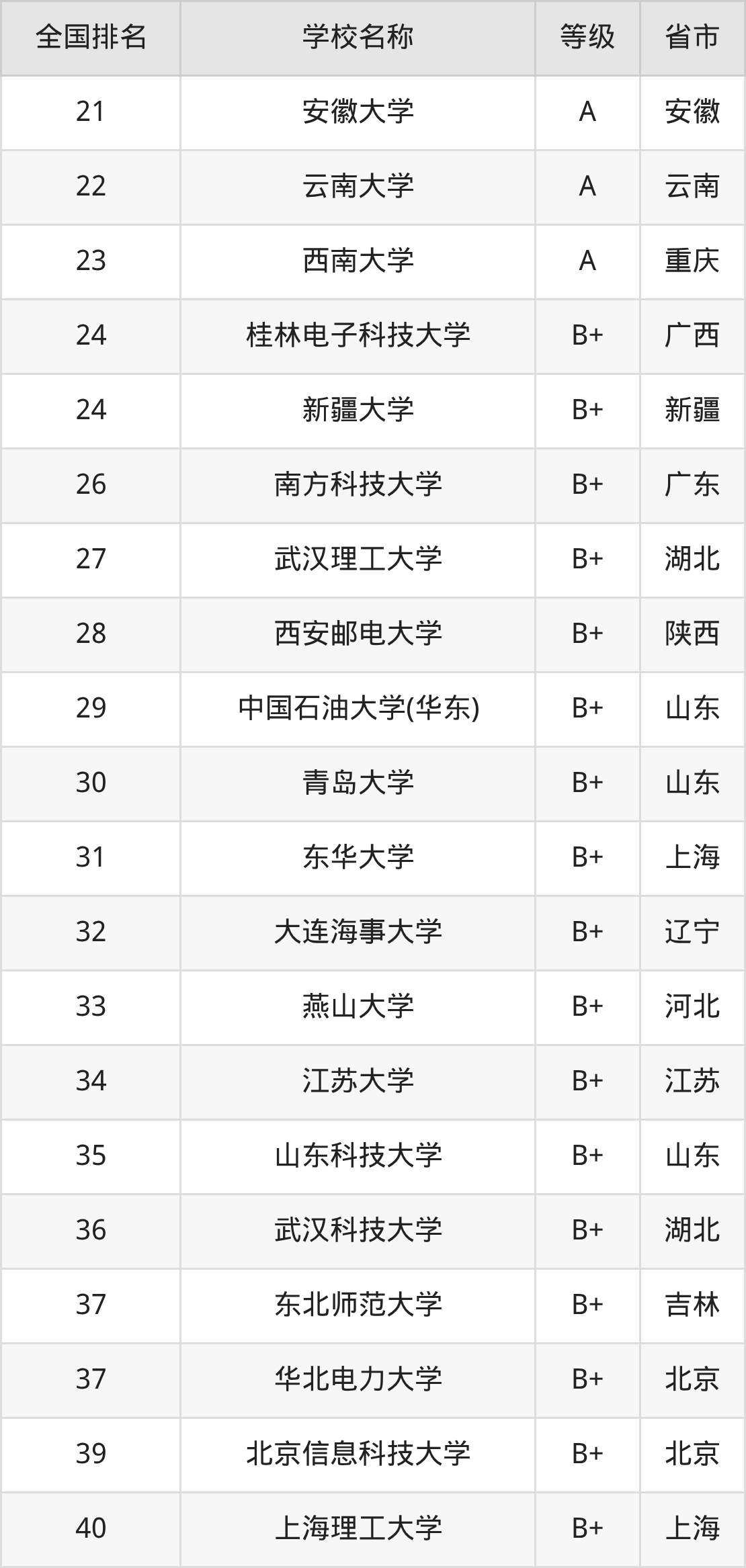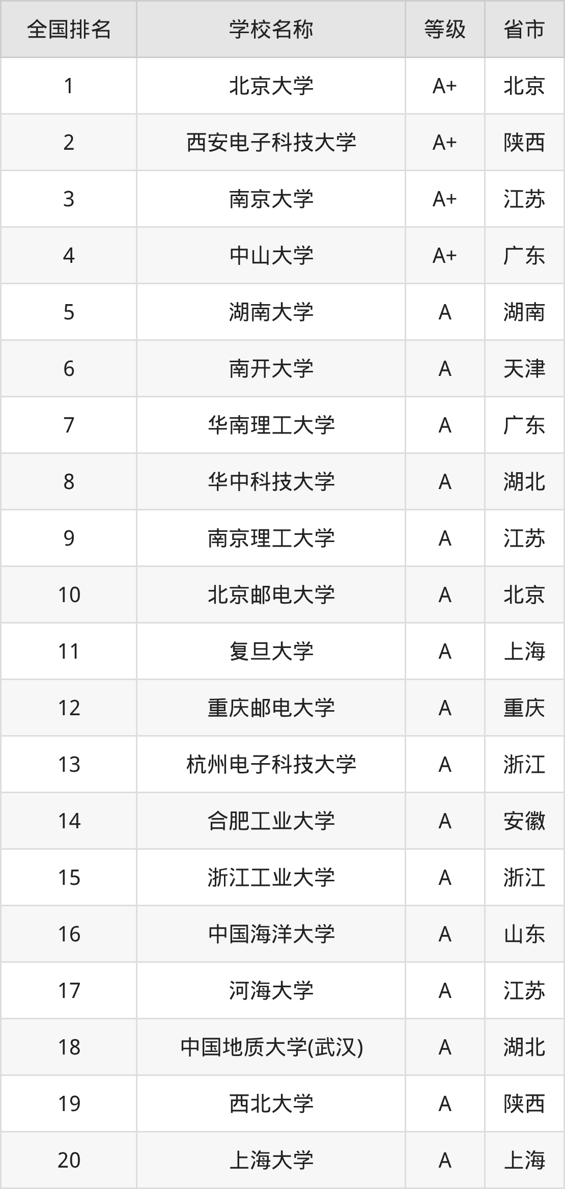 下面是智能科学与技术专业全国排名前10的大学名单及实力评级: