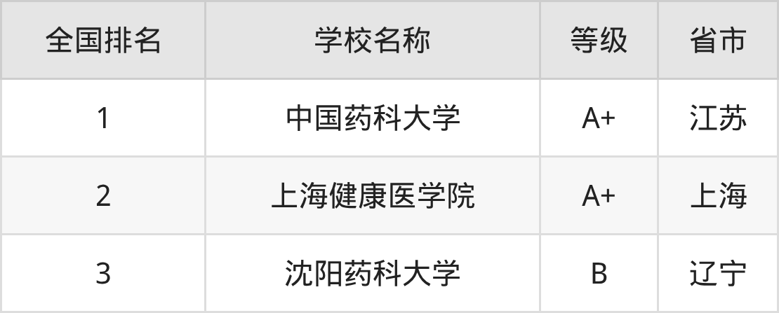 全国医疗产品管理开设院校参与排名的共有3所,实力最强的是中国药科大学(全国排名第1名),其专业实力等级被评为A+级。