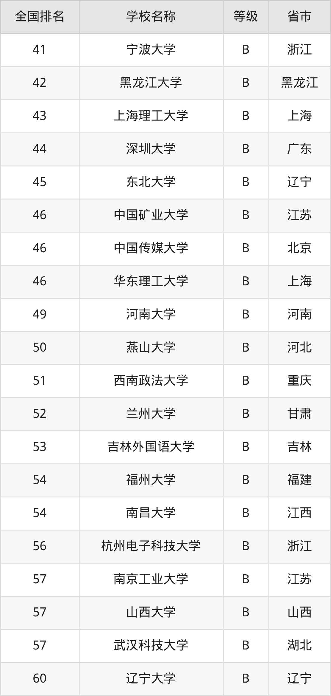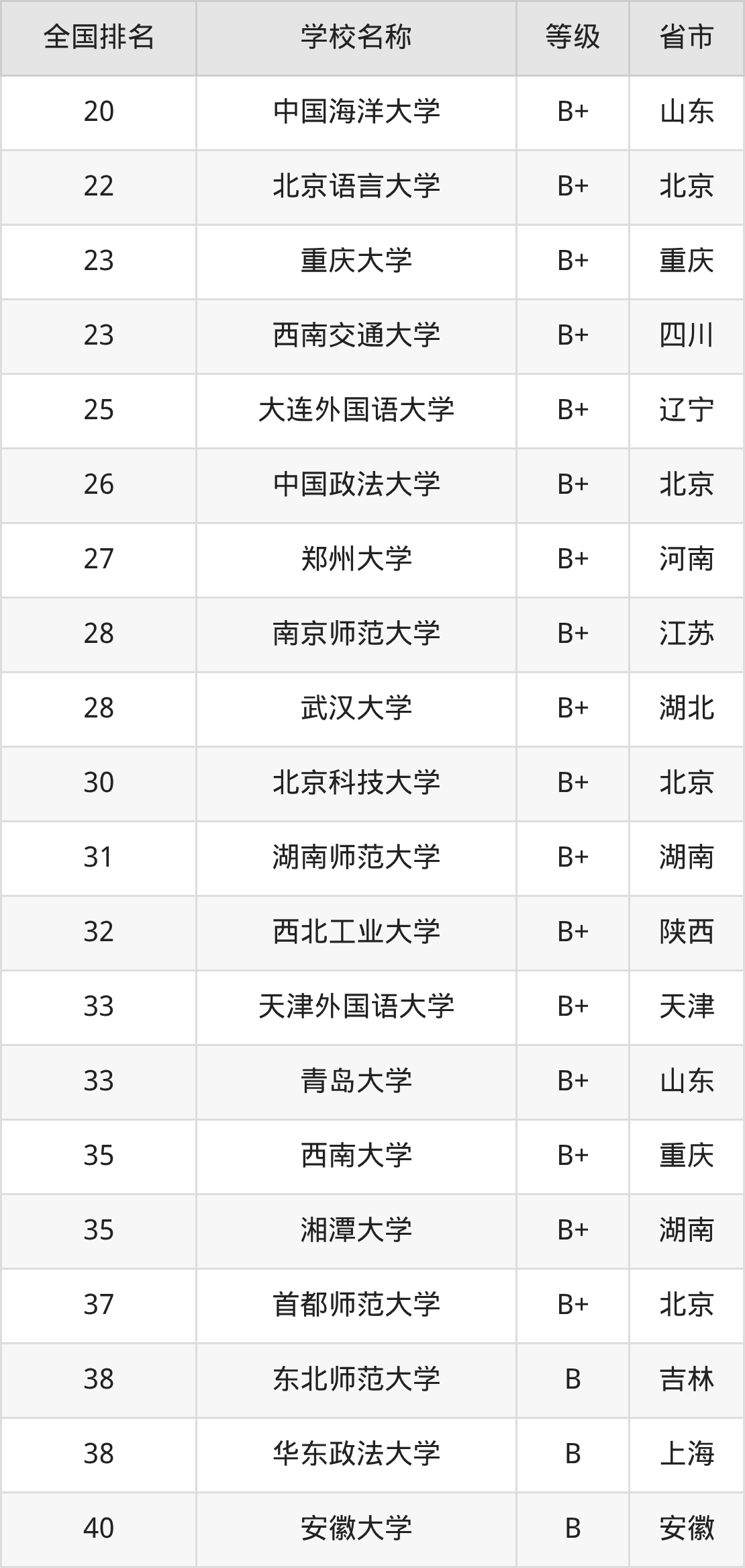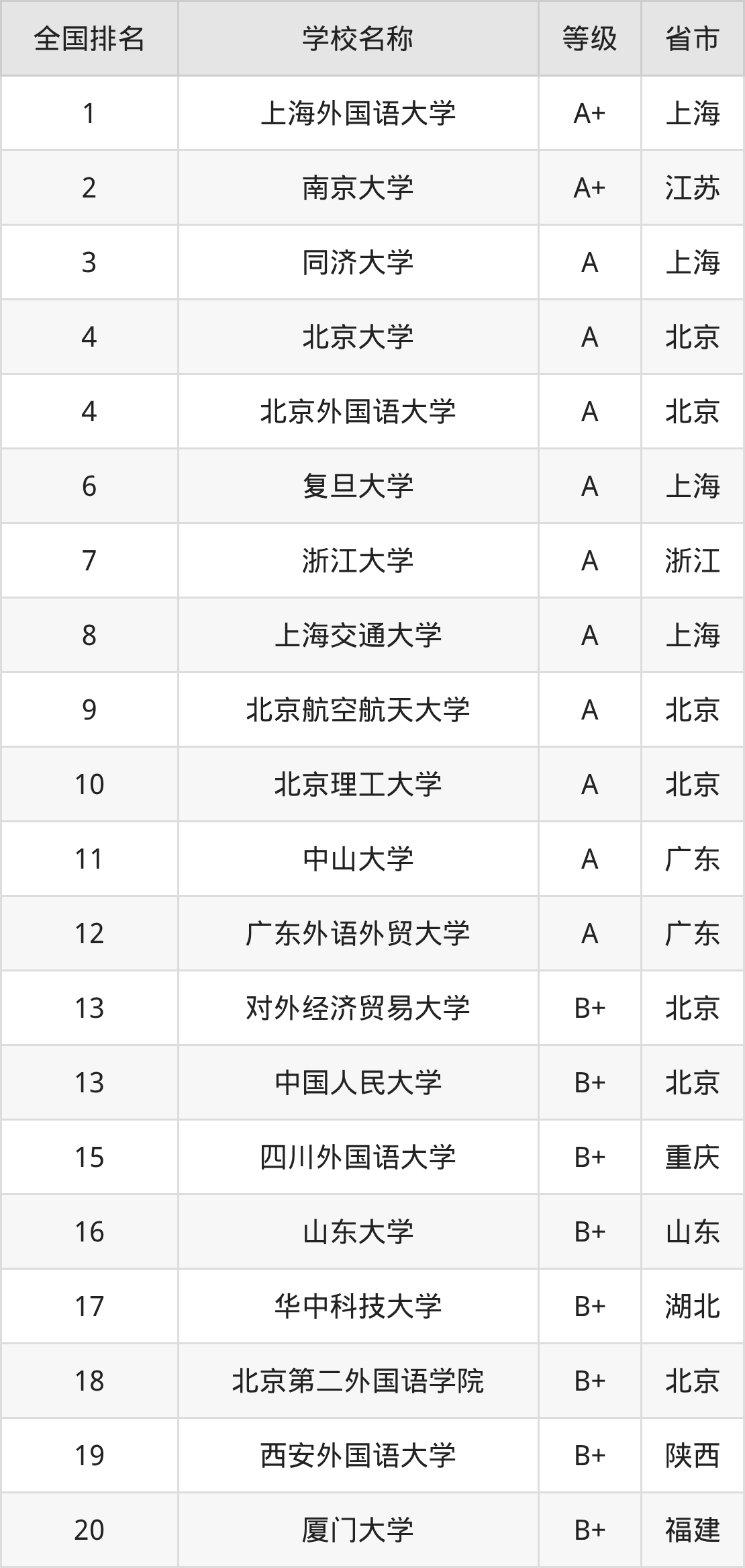 下面是德语专业全国排名前10的大学名单及实力评级: