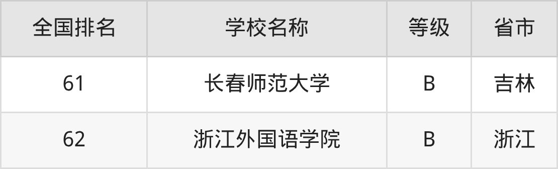全国德语开设院校参与排名的共有62所,实力最强的是上海外国语大学(全国排名第1名),其专业实力等级被评为A+级。