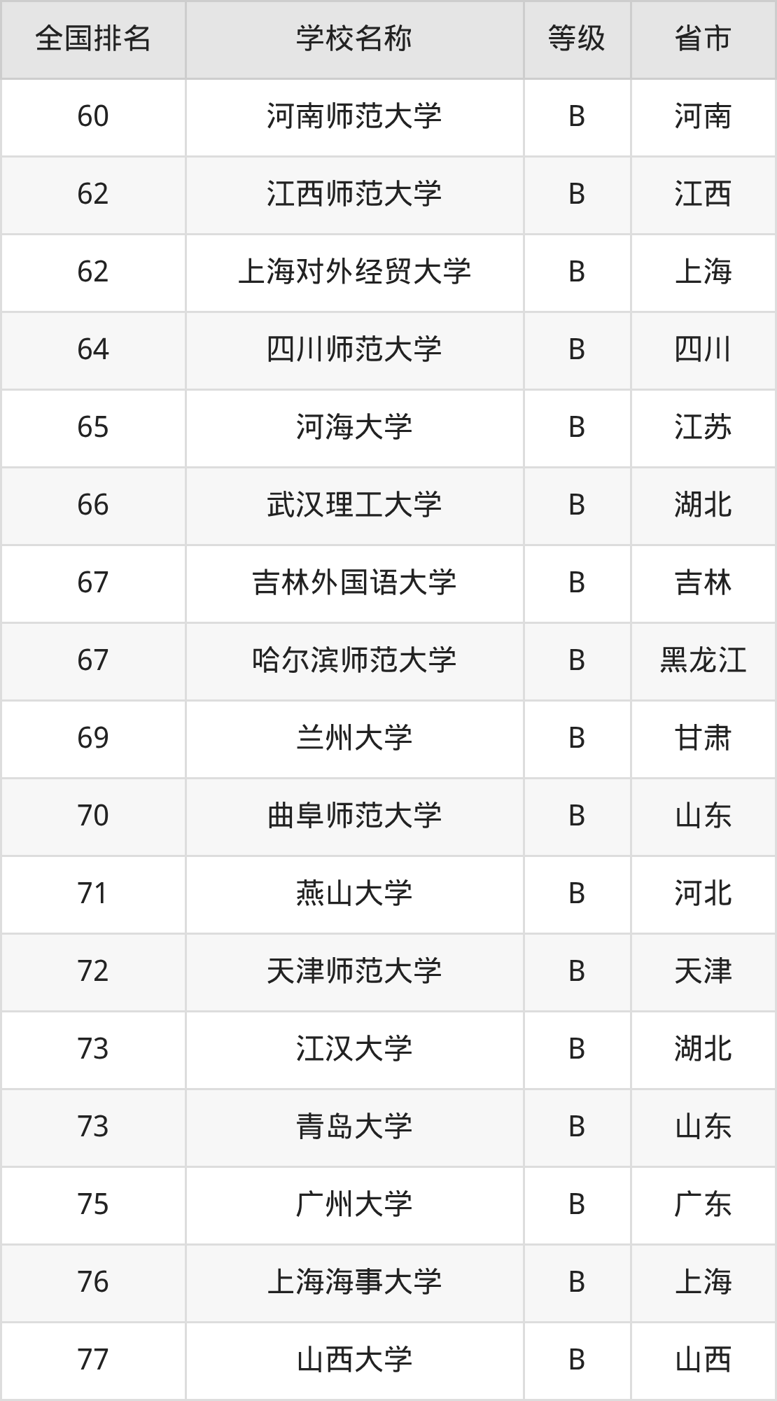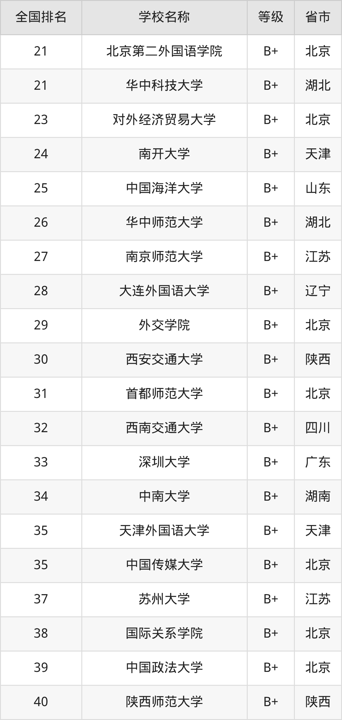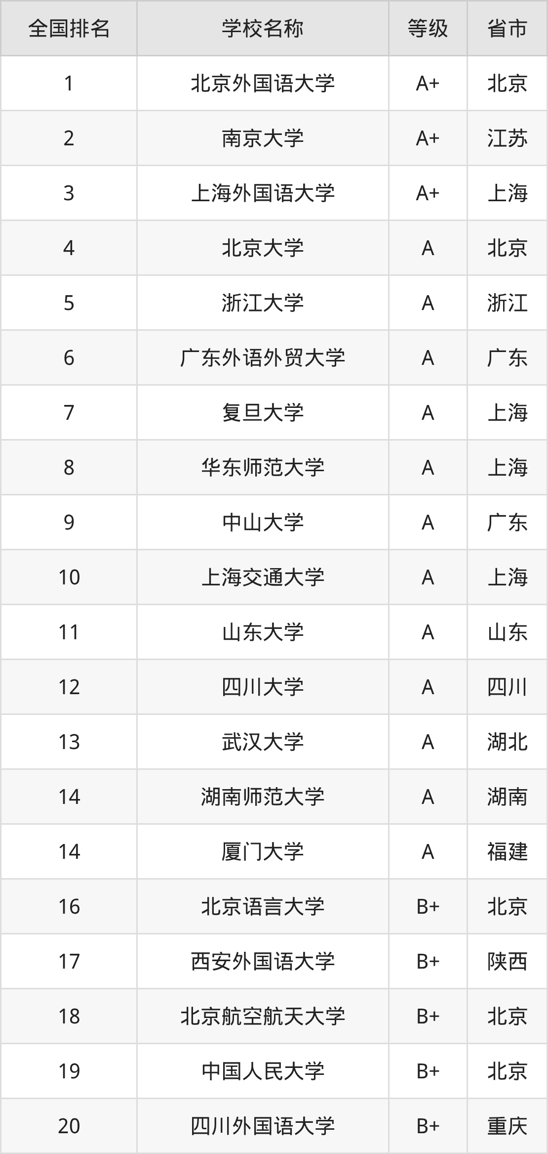 下面是法语专业全国排名前10的大学名单及实力评级: