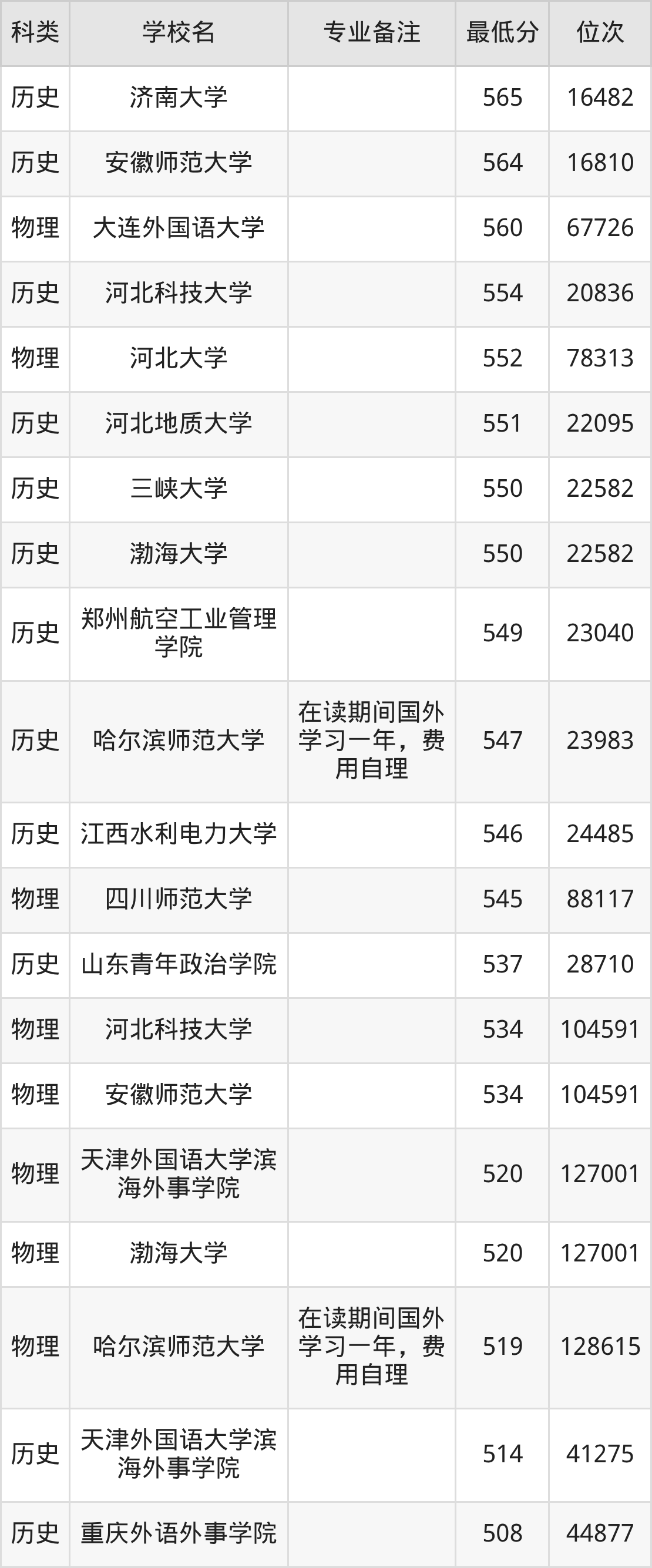 2025年全国大学法语录取分数线在471分~636分之间。数据显示,考生如果想报考公办大学,分数要在519分及以上,最低分院校有哈尔滨师范大学等。