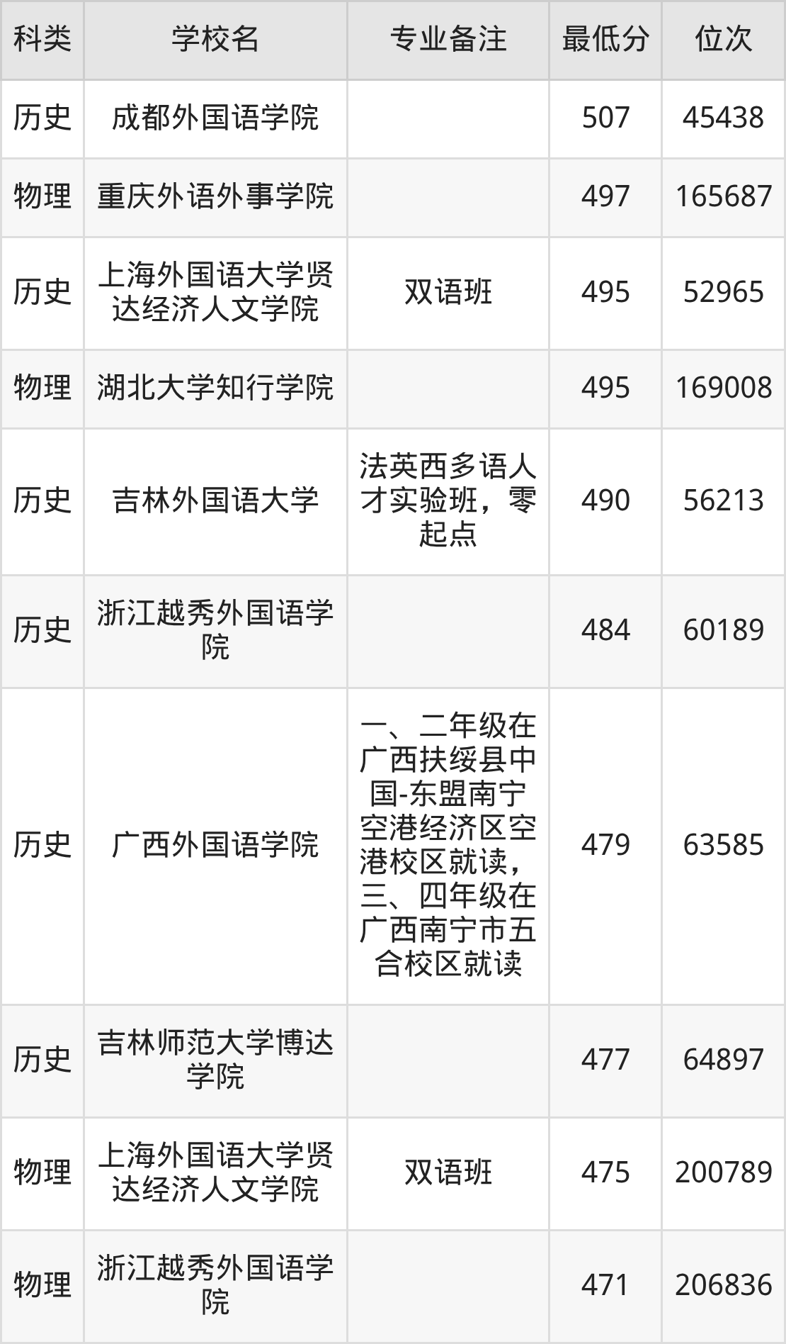 法语专业分数最低的民办大学是浙江越秀外国语学院,其2025年最低分为471分,考生只要超本科线12分即有概率能被录取。