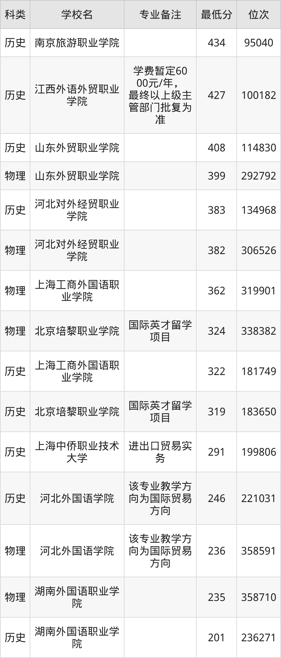应用西班牙语专业分数最低的民办大学是湖南外国语职业学院,其2025年最低分为201分,考生只要超专科线1分即有概率能被录取。