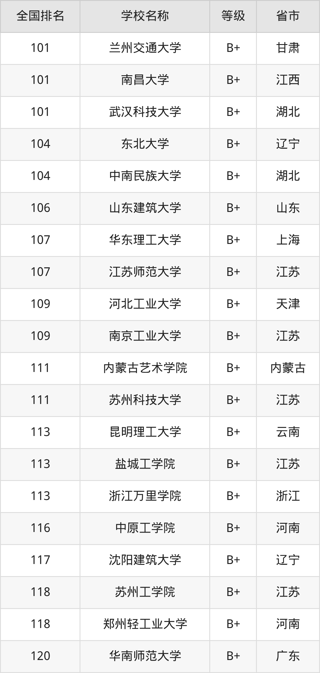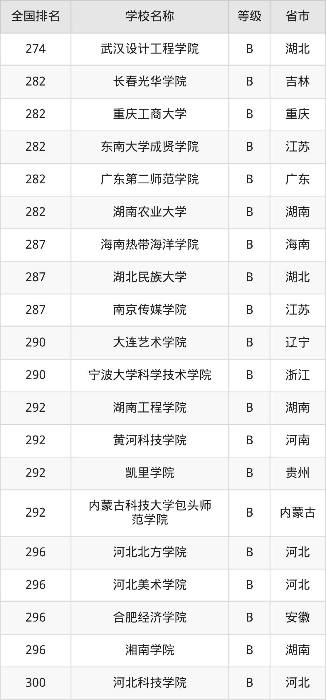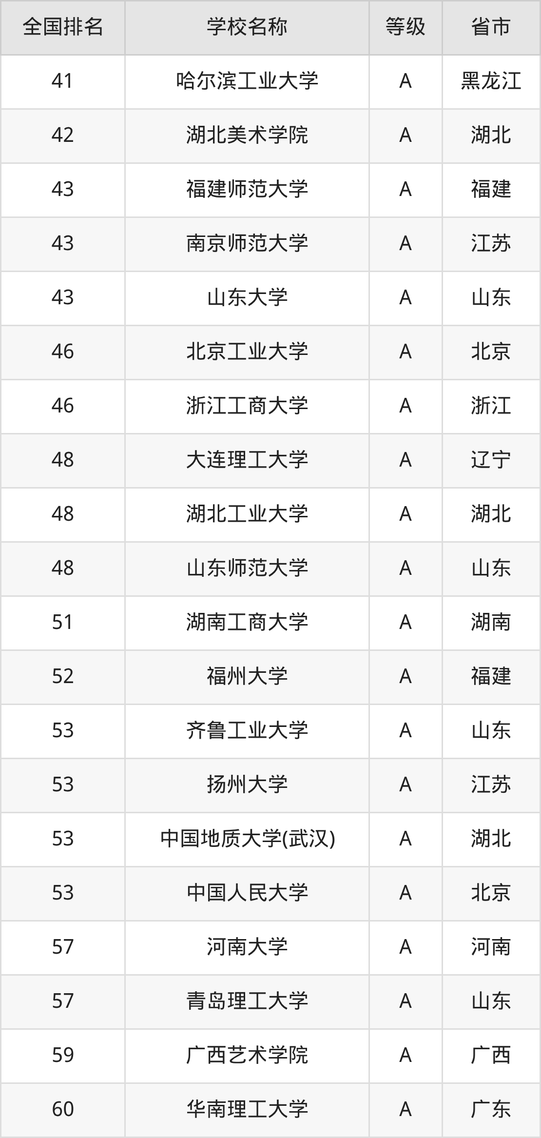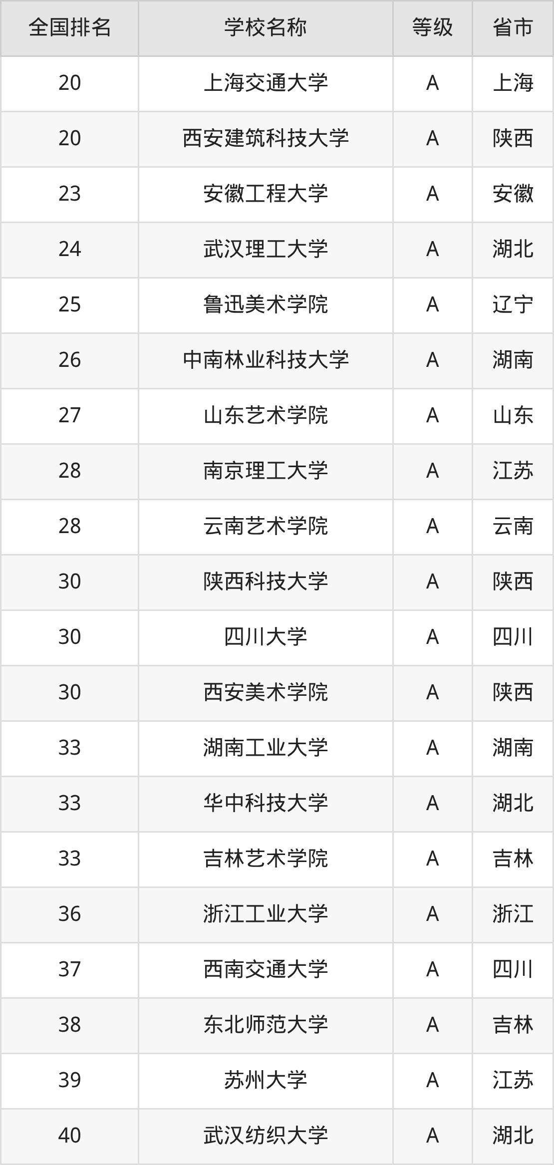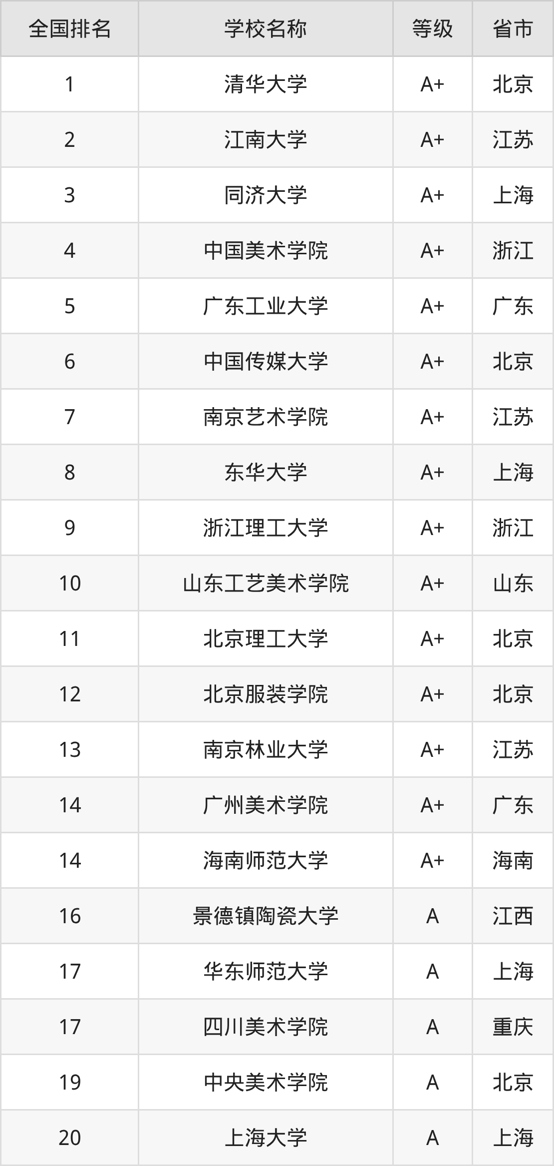 下面是环境设计专业全国排名前10的大学名单及实力评级: