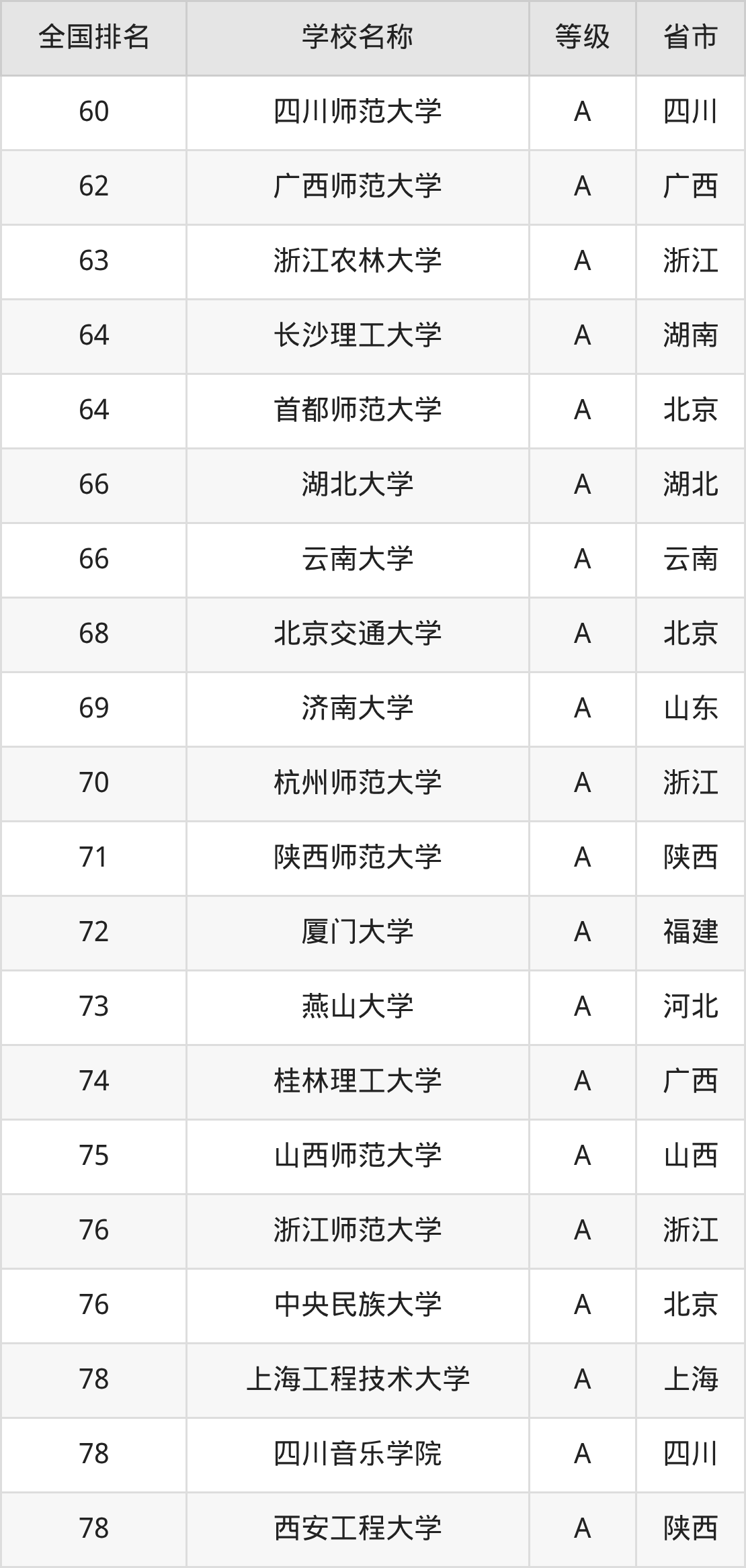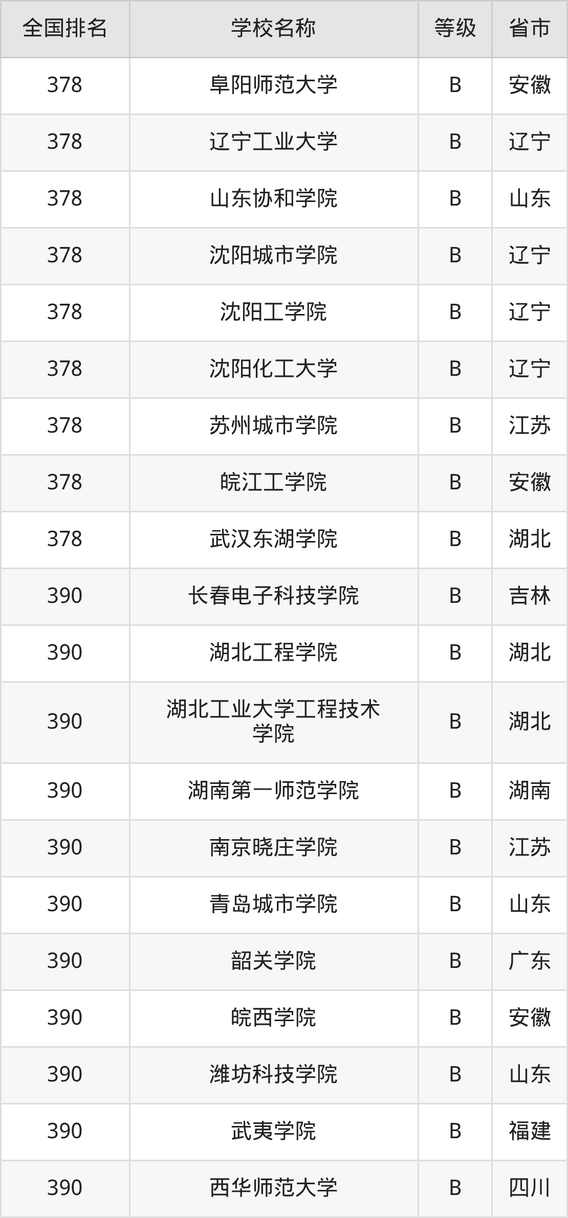 全国环境设计开设院校参与排名的共有400所,实力最强的是清华大学(全国排名第1名),其专业实力等级被评为A+级。