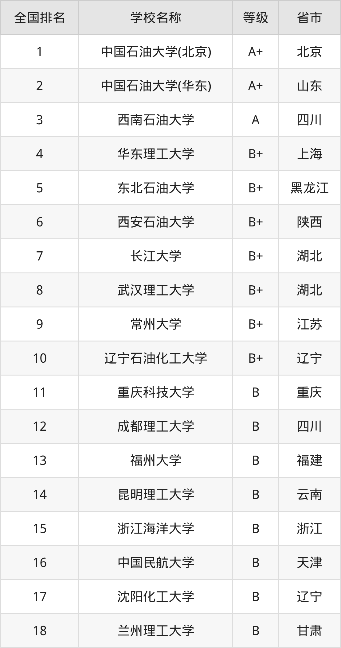 1、中国石油大学(北京)(A+级)