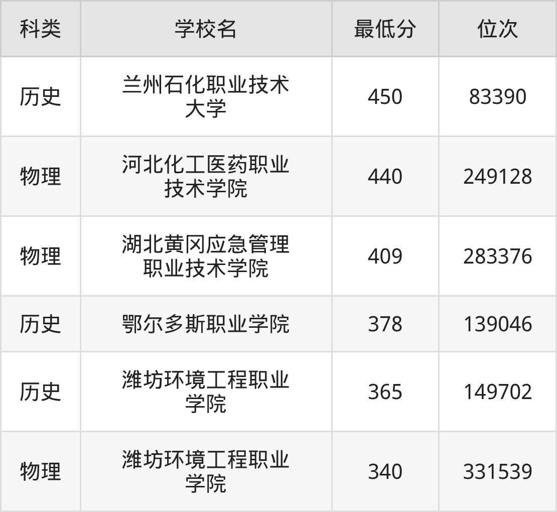 化工安全技术专业分数最低的民办大学是潍坊环境工程职业学院,其2025年最低分为340分,考生只要超专科线140分即有概率能被录取。