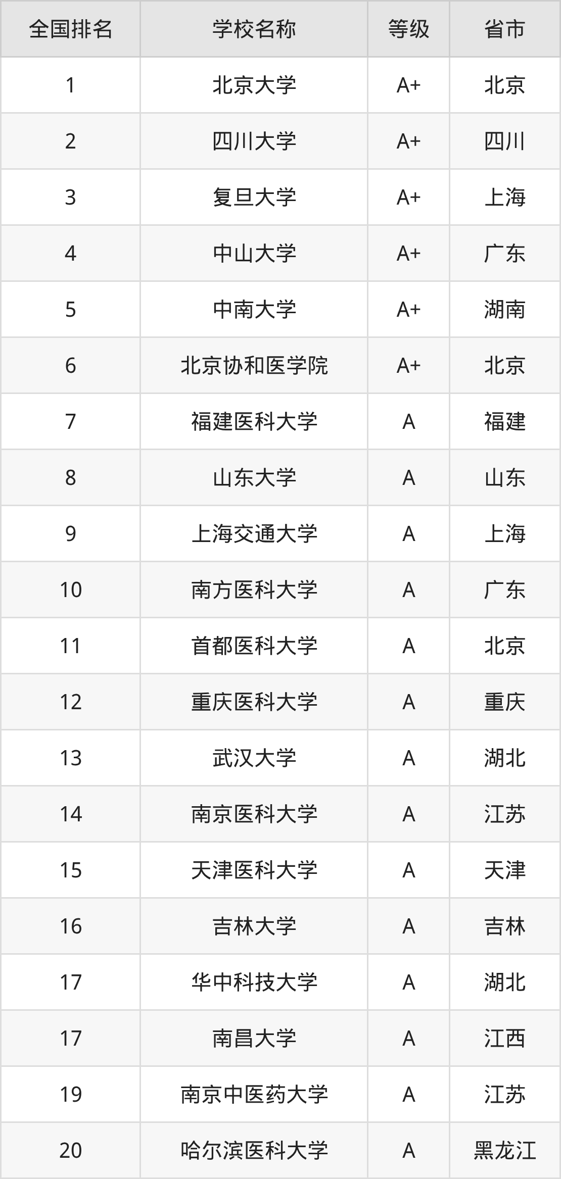 6、北京协和医学院(A+级)