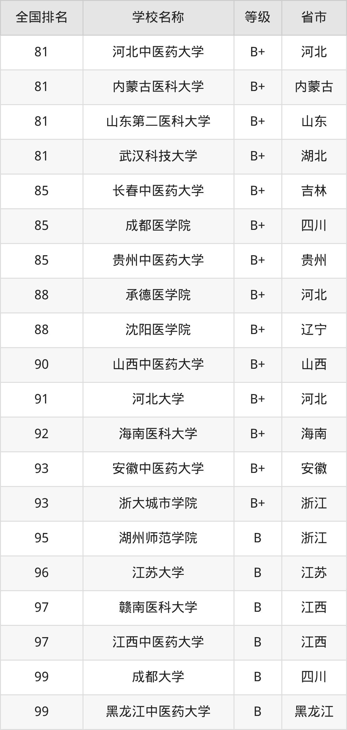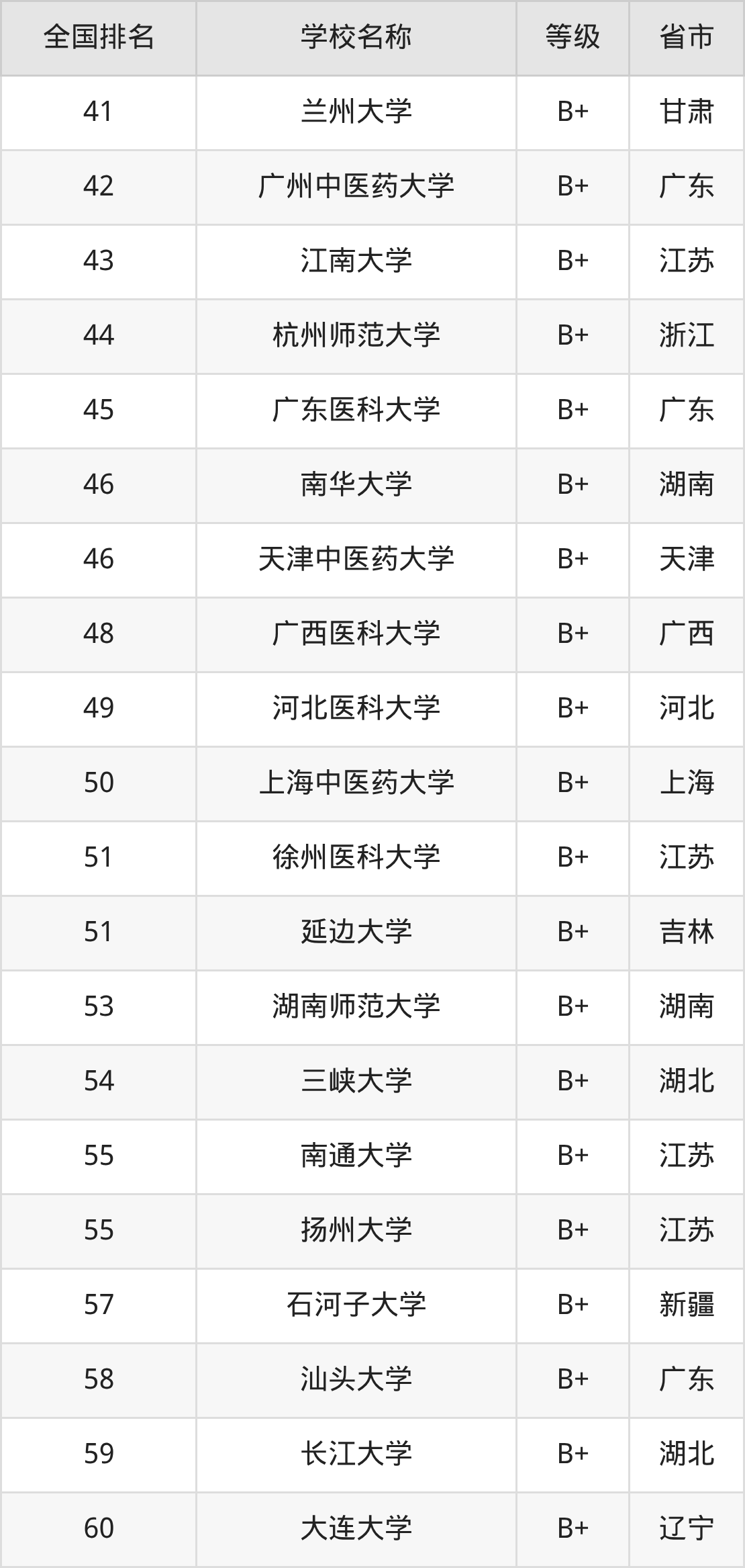 最新排名表可直接见下:
