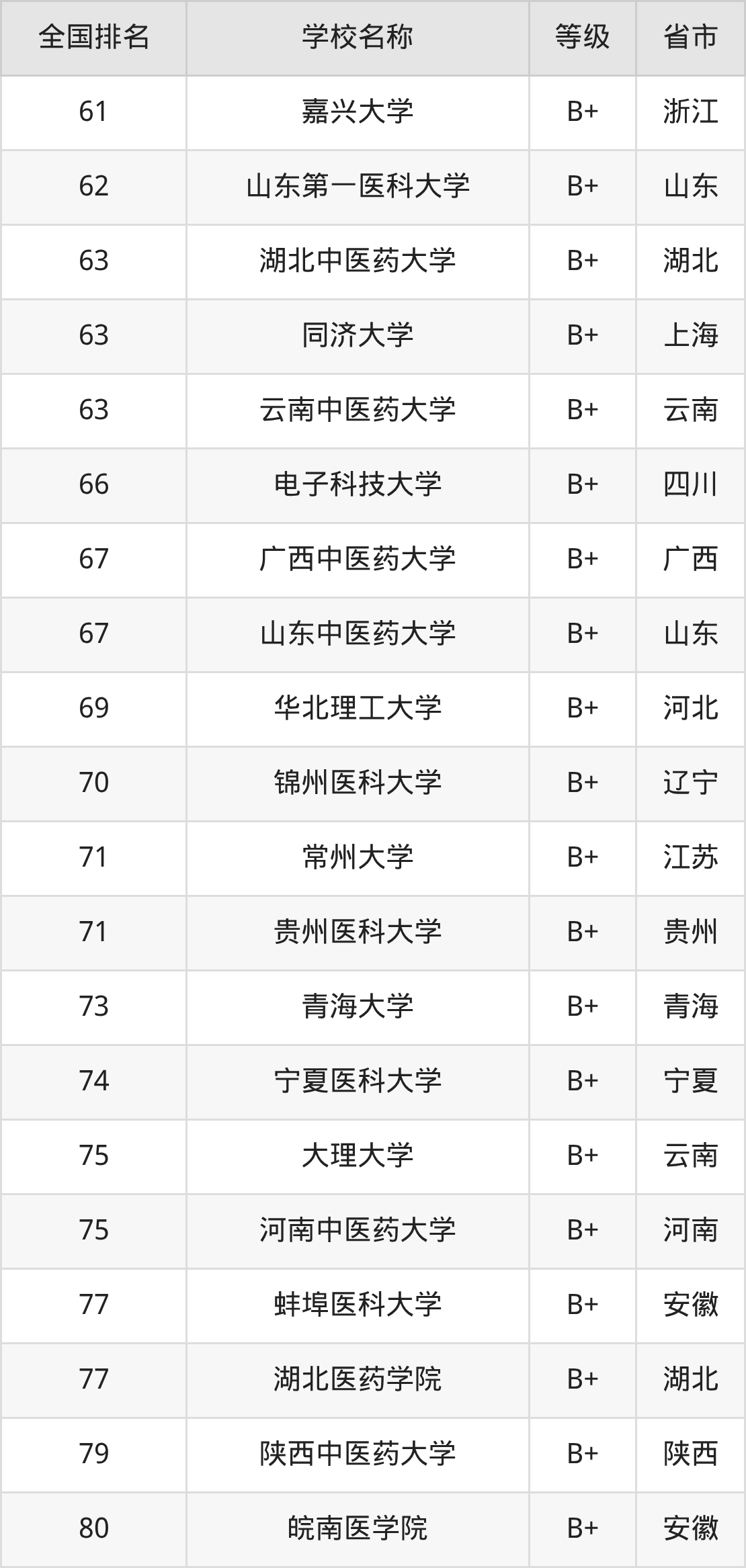 下面是护理学专业全国排名前10的大学名单及实力评级: