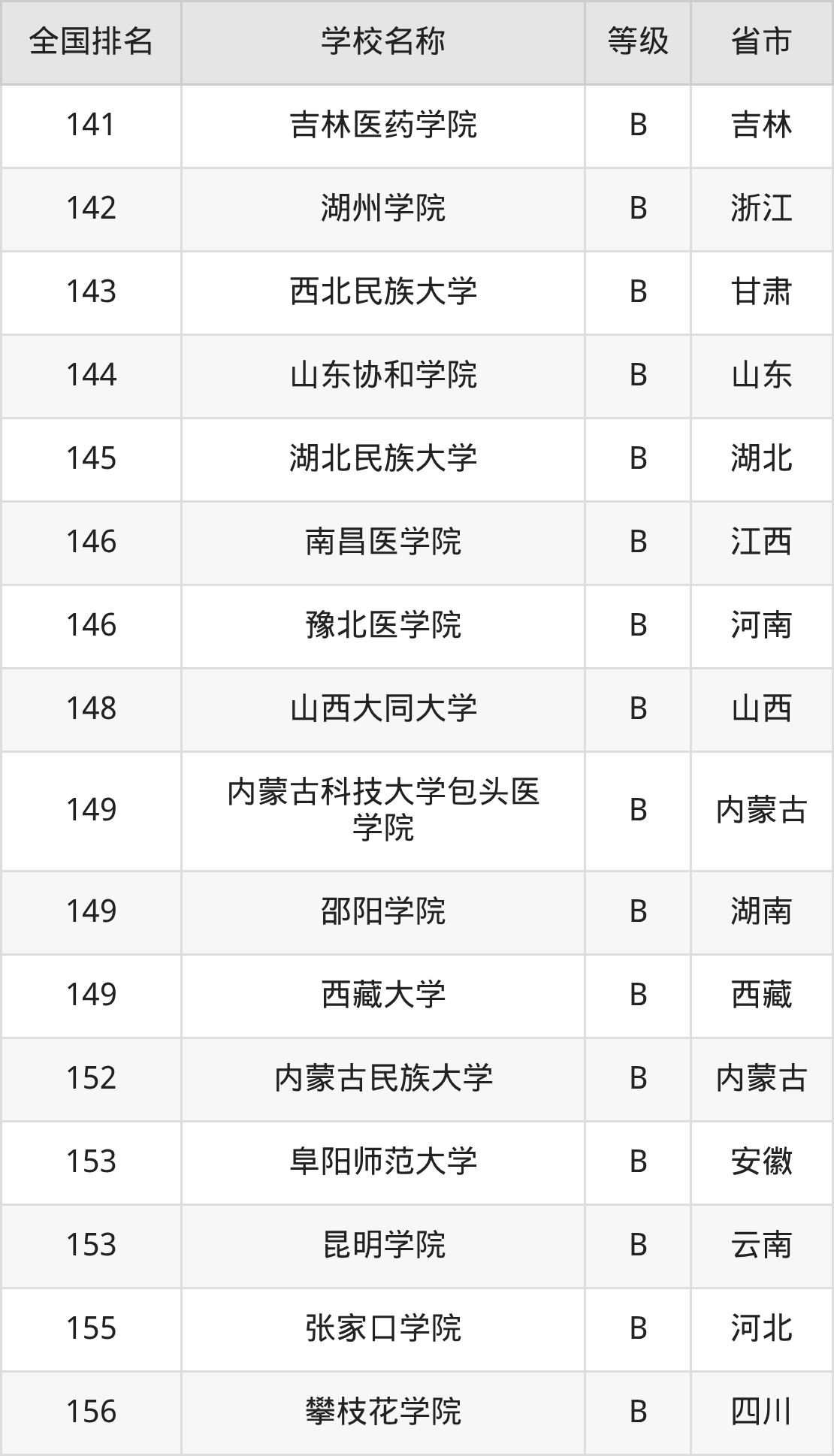 全国护理学开设院校参与排名的共有156所,实力最强的是北京大学(全国排名第1名),其专业实力等级被评为A+级。