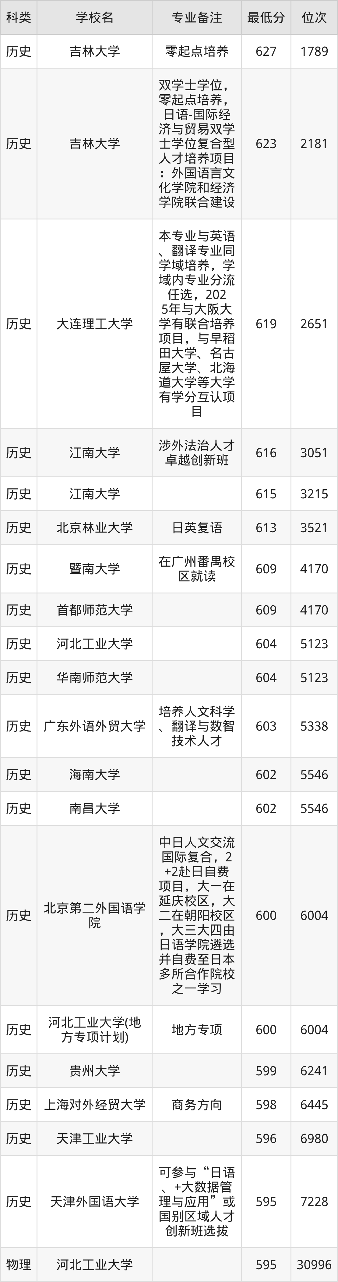 而根据最新一年排行榜显示,日语专业本科排名最靠前、实力最强的大学是北京大学。下面就对日语的就业情况以及大学最新排名、2025专业分数进行分析,以供2026届考生参考。