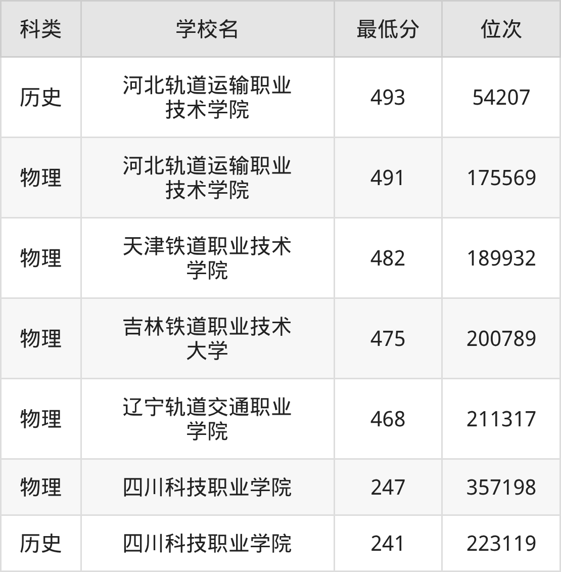 下面是2025年高速铁路动车组制造与维护录取分数线Top7一览表: