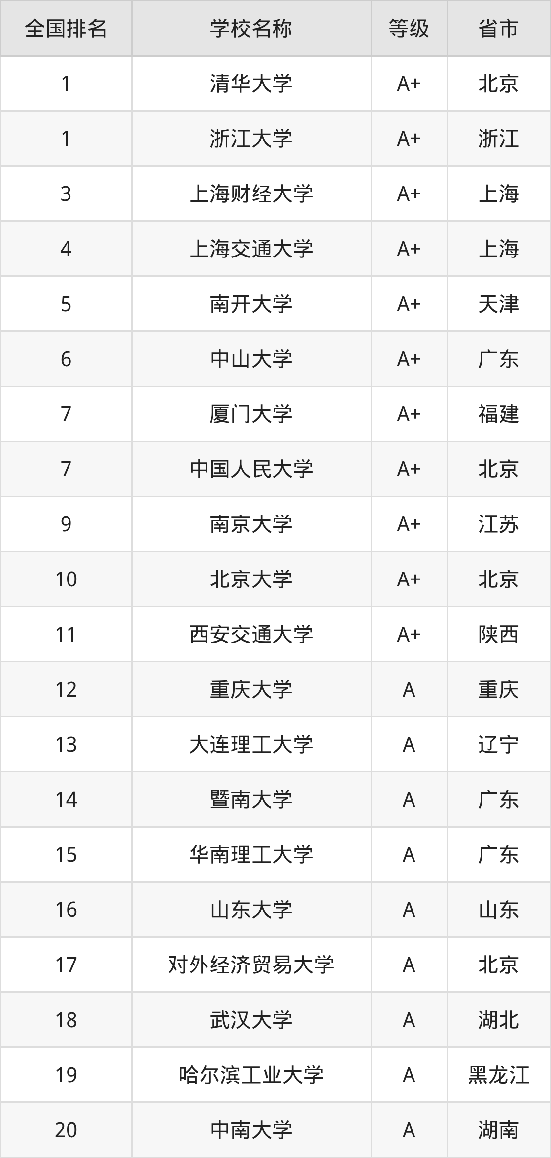 1、清华大学(A+级)