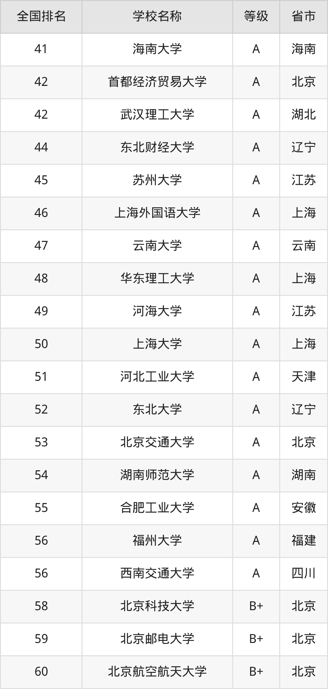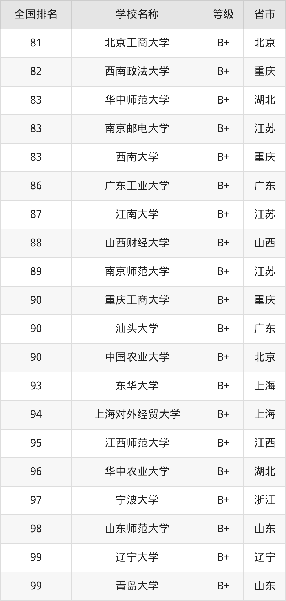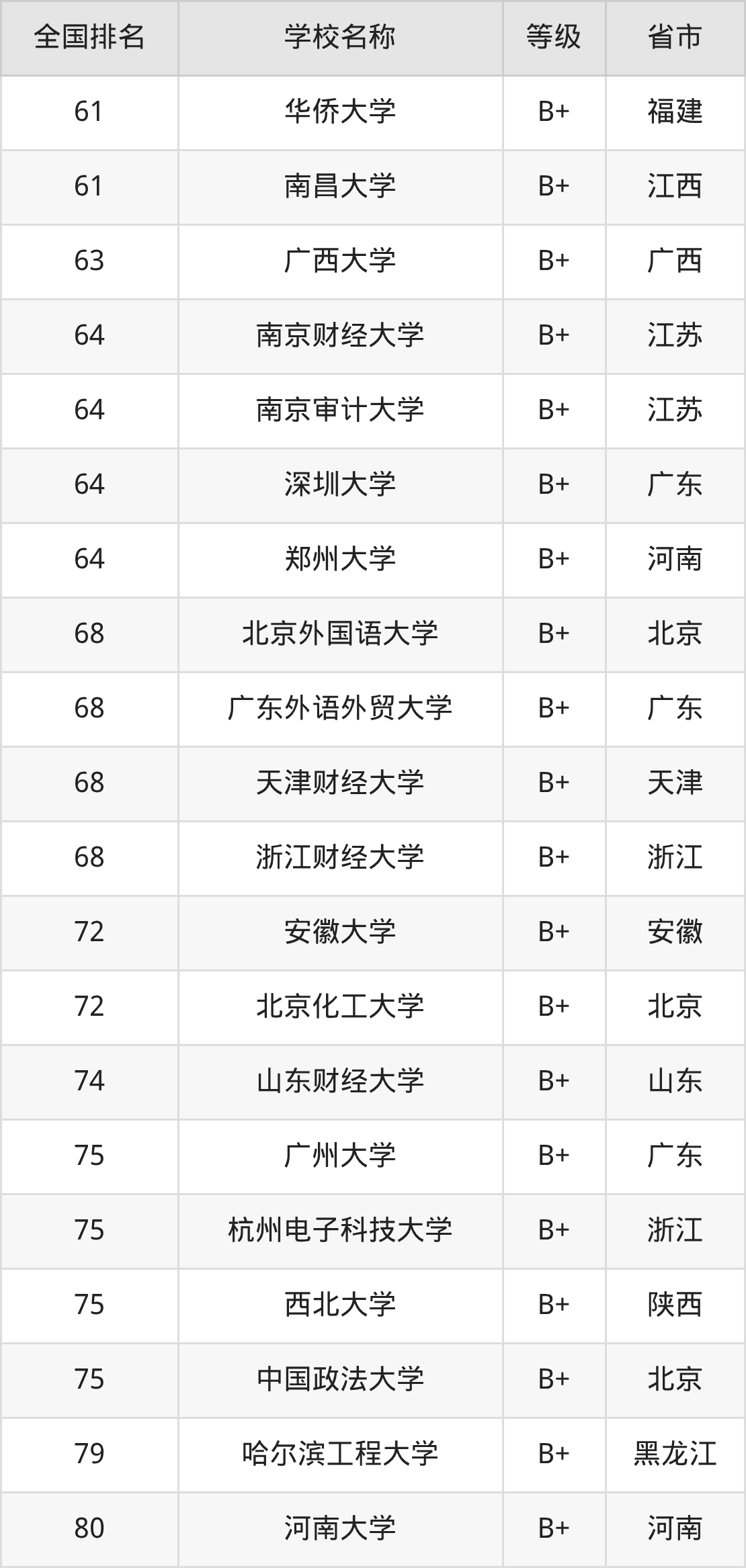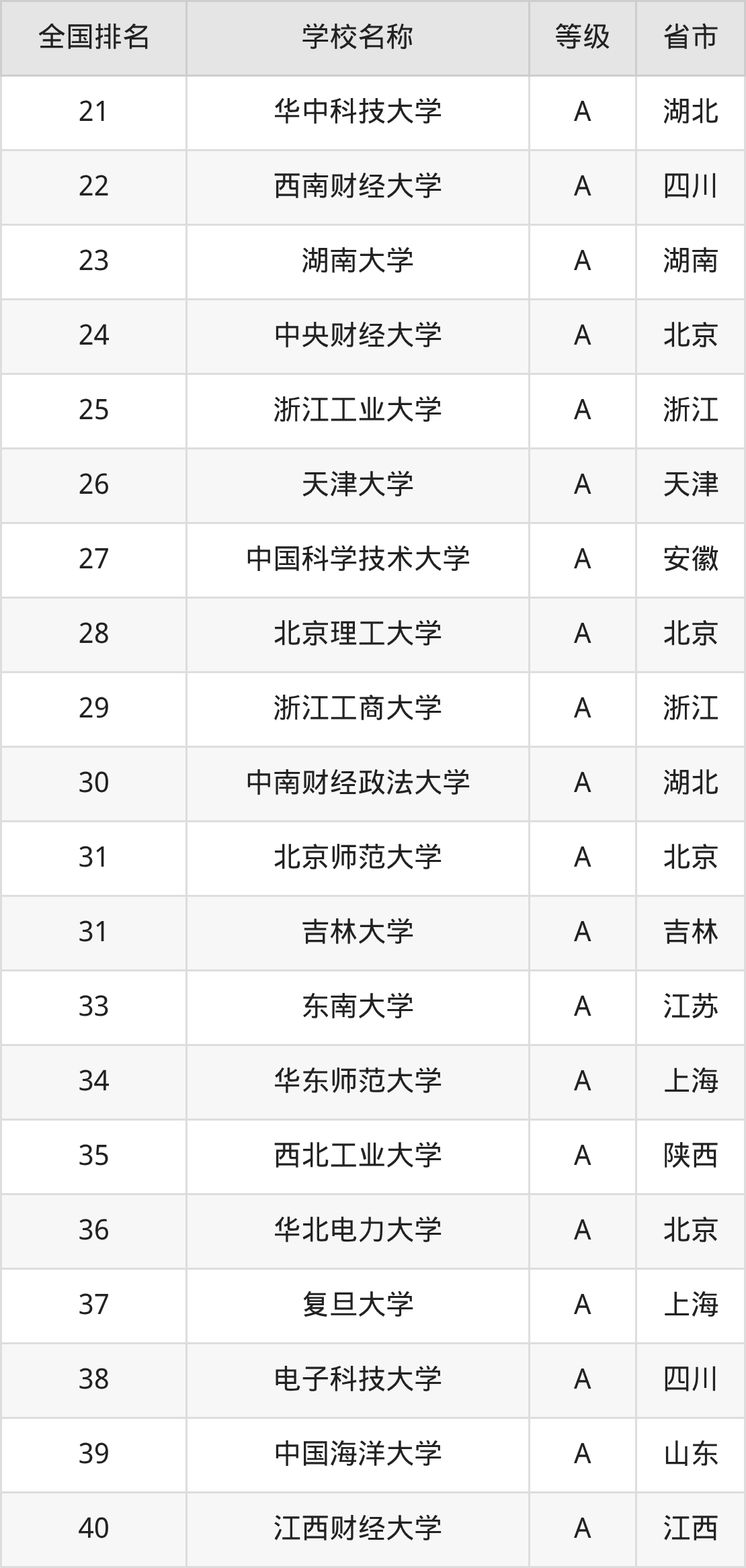 最新排名表可直接见下: