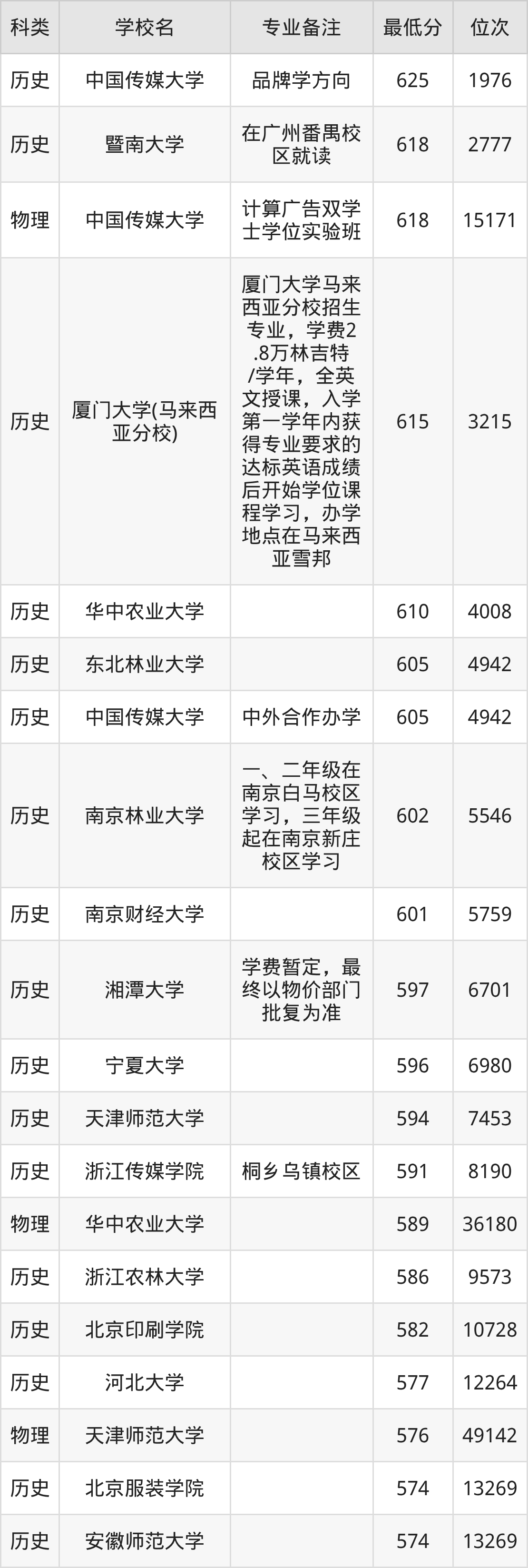 2025年全国大学广告学录取分数线在459分~625分之间。数据显示,考生如果想报考公办大学,分数要在506分及以上,最低分院校有喀什大学等。
