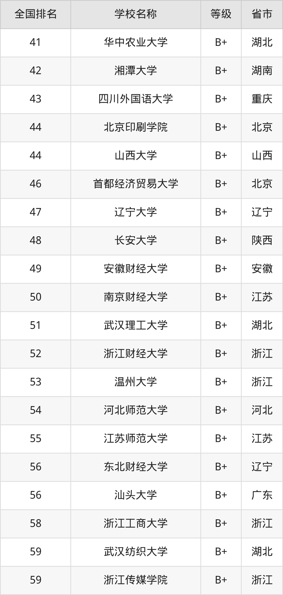 下面是广告学专业全国排名前10的大学名单及实力评级: