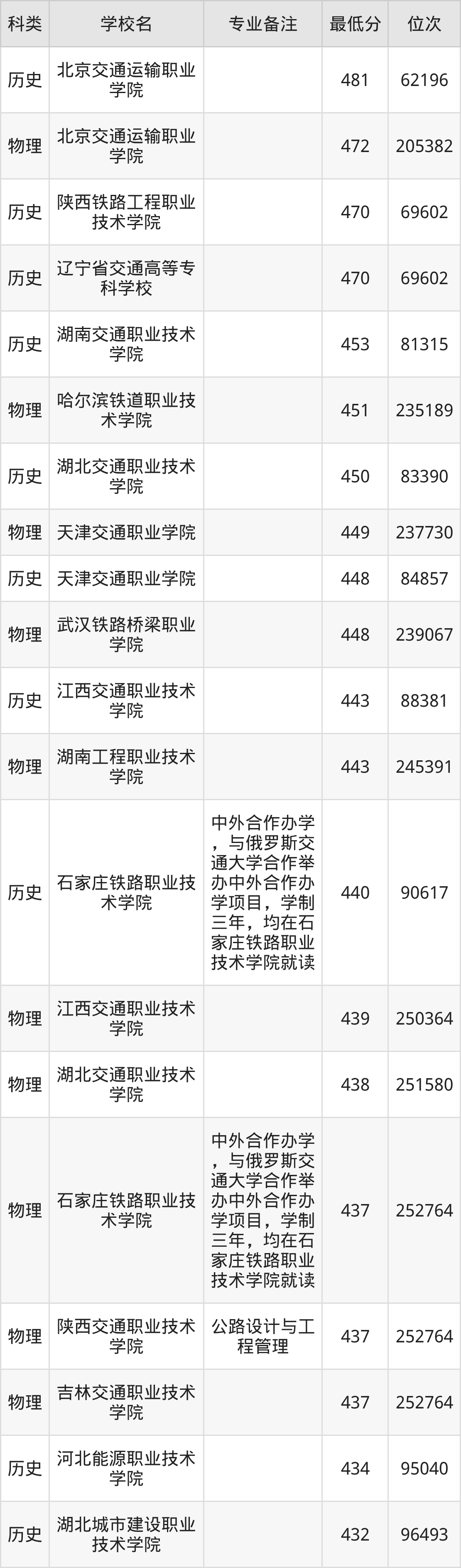 下面是2025年道路与桥梁工程技术录取分数线Top60一览表: