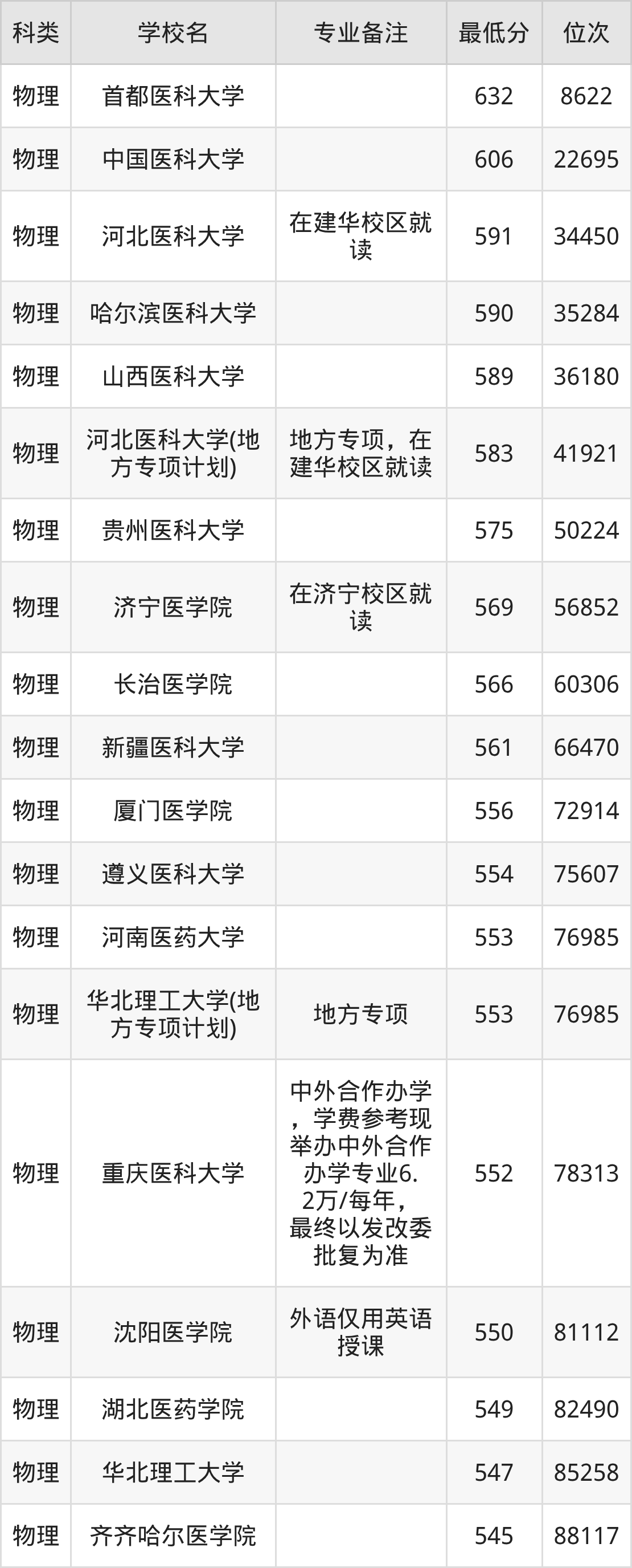 2025年全国大学精神医学录取分数线在545分~632分之间。数据显示,考生如果想报考公办大学,分数要在545分及以上,最低分院校有齐齐哈尔医学院等。