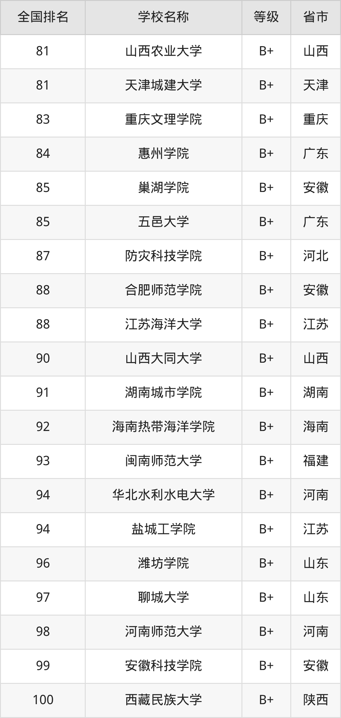 最新排名表可直接见下: