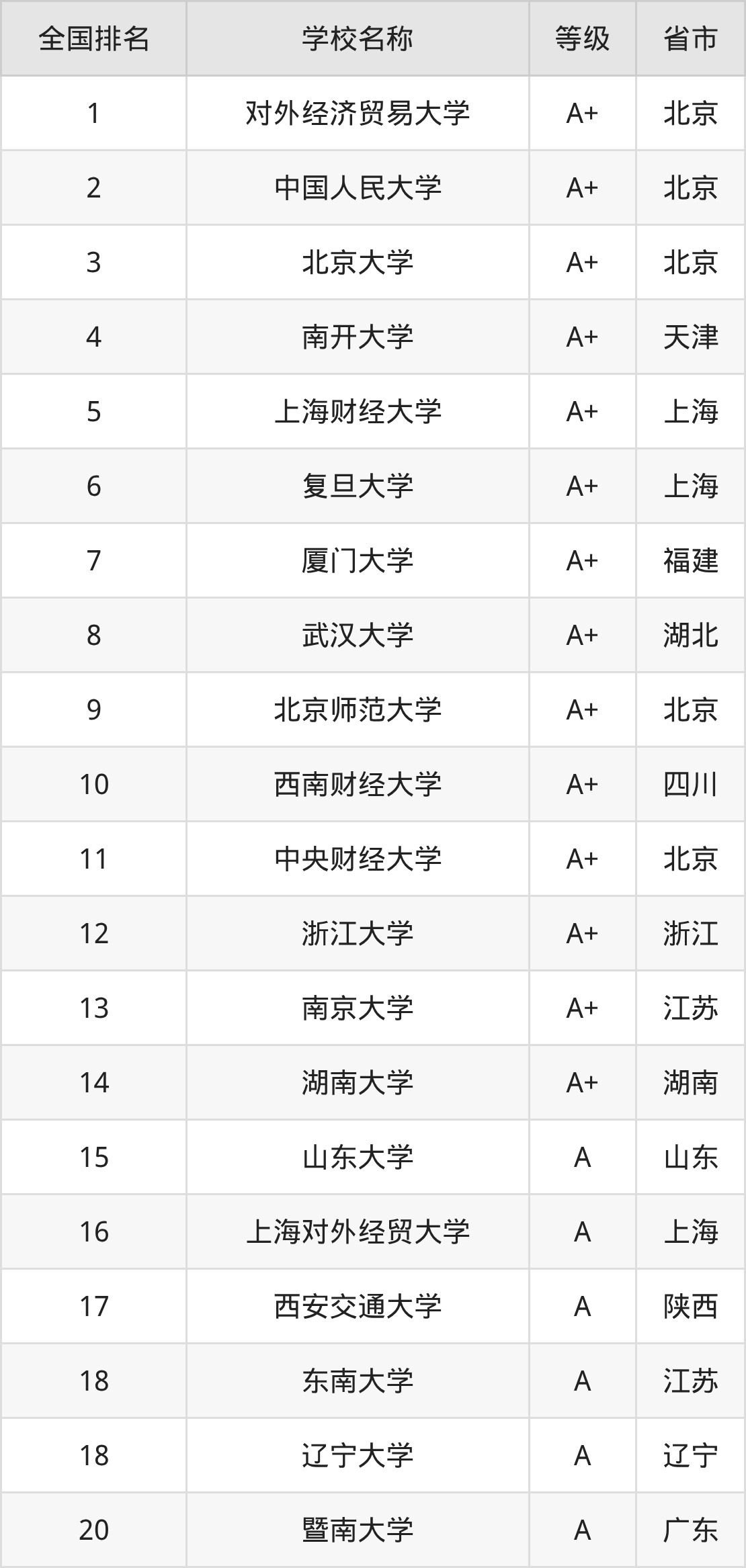 下面是国际经济与贸易专业全国排名前10的大学名单及实力评级: