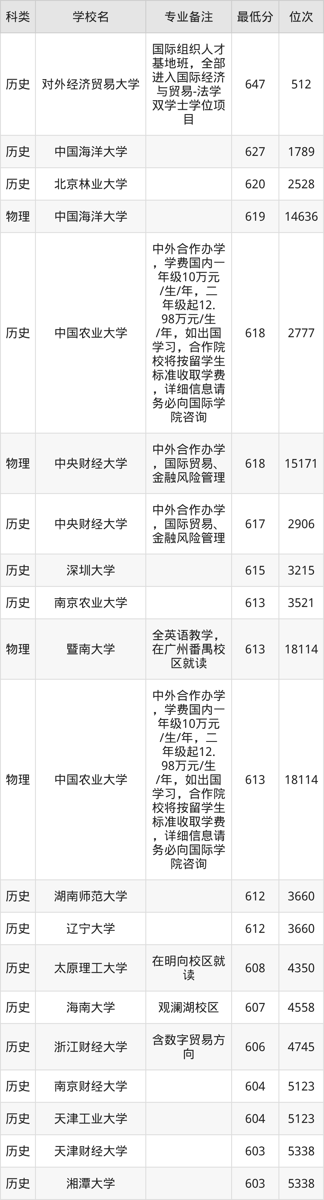下面是2025年国际经济与贸易录取分数线Top100一览表: