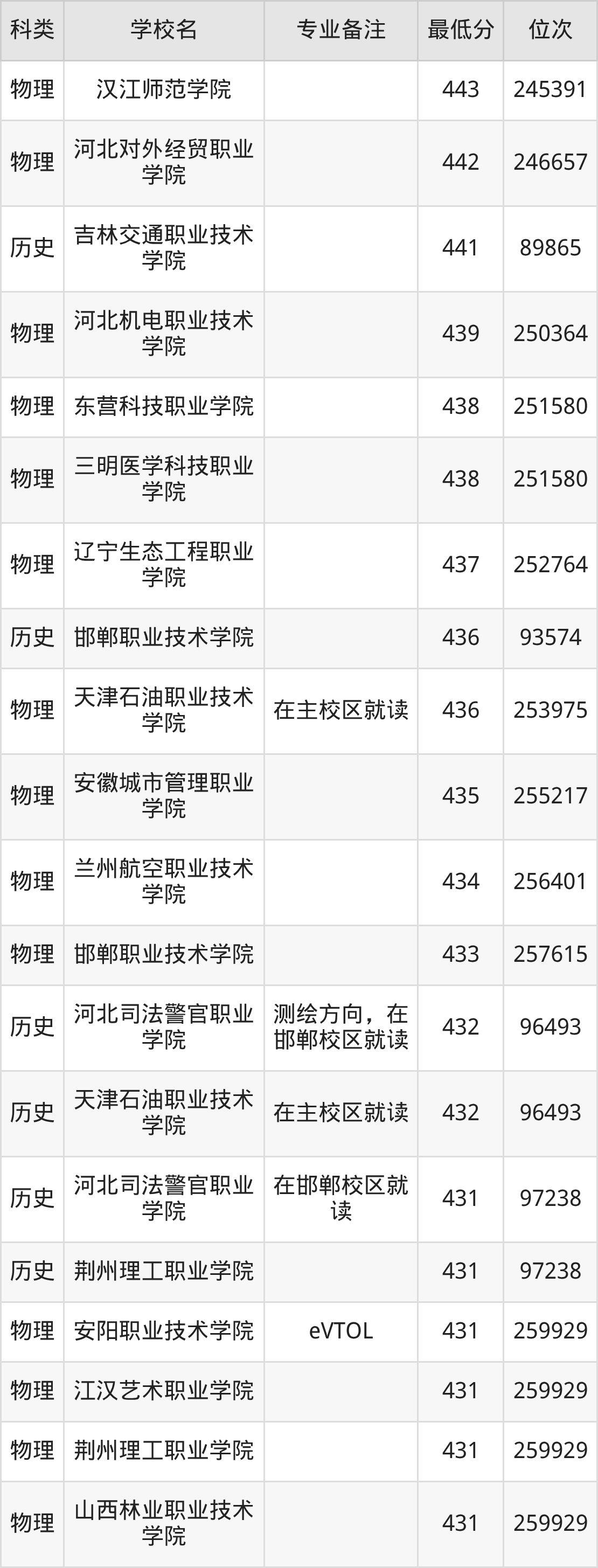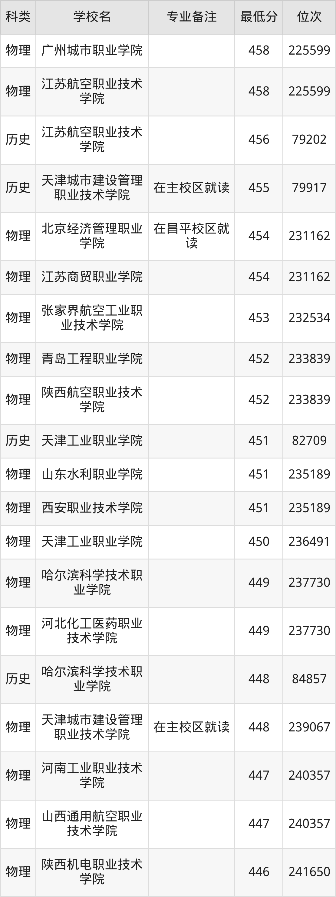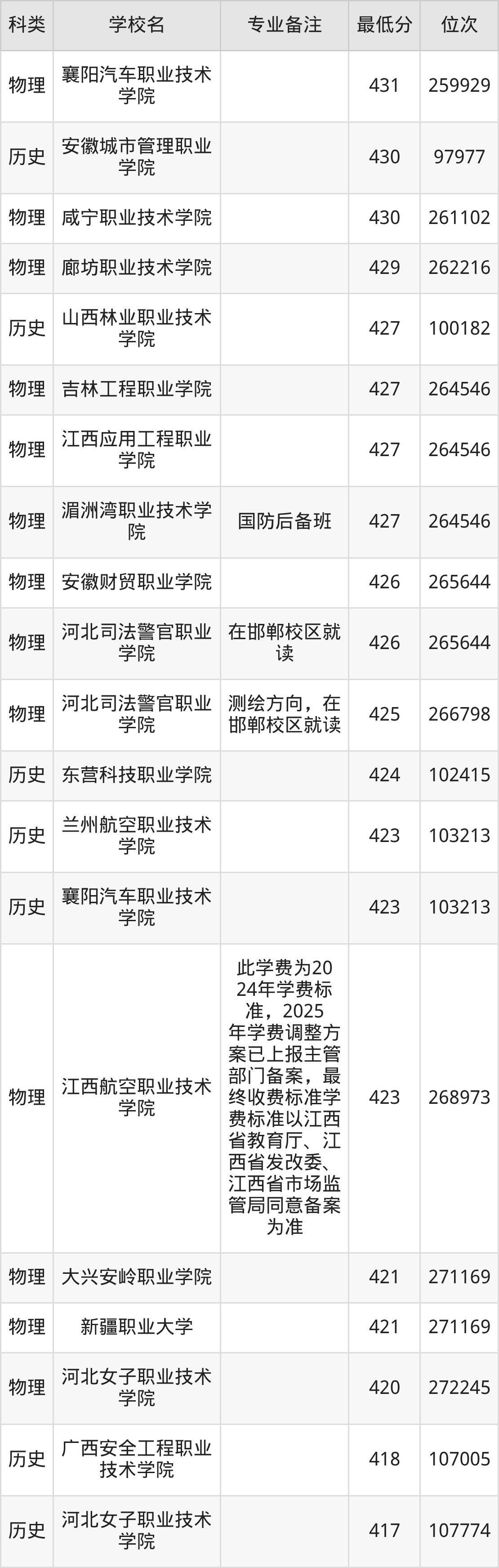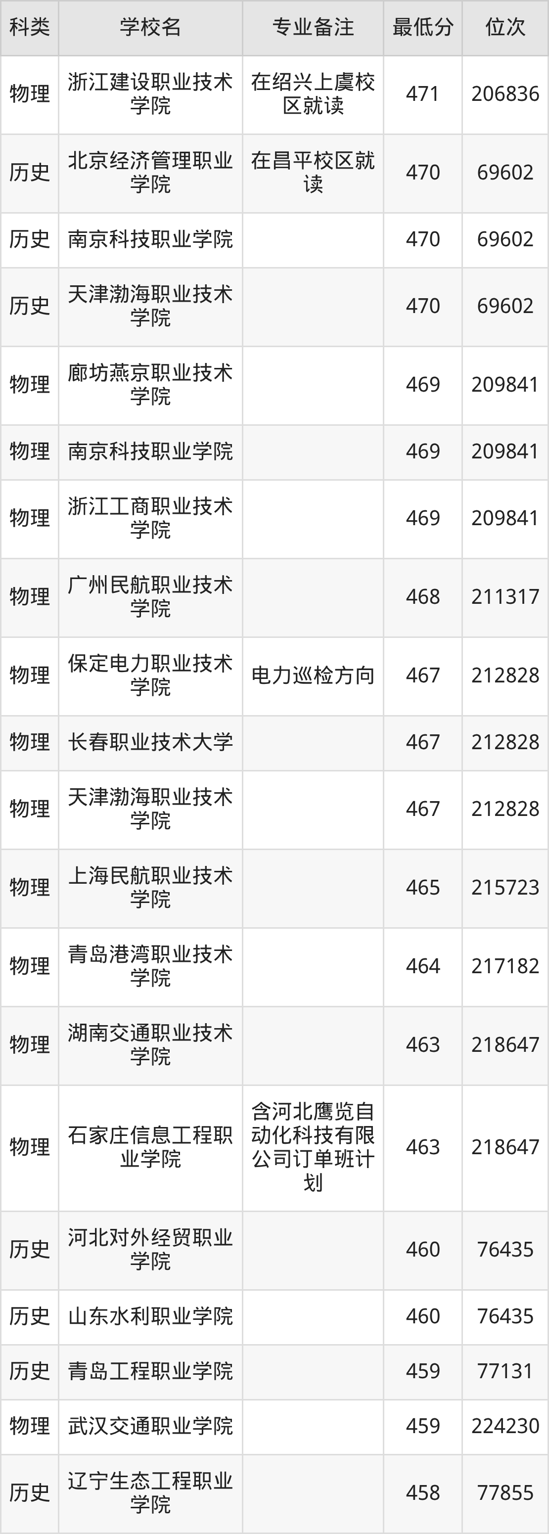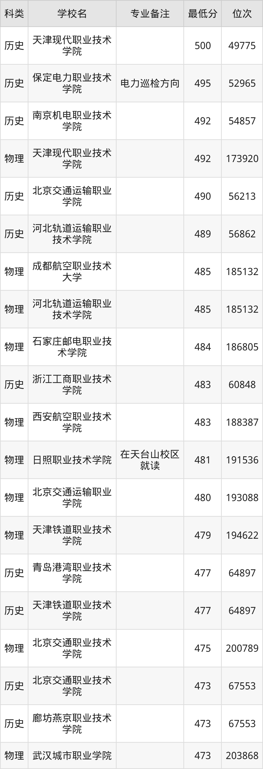 下面是2025年无人机应用技术录取分数线Top100一览表: